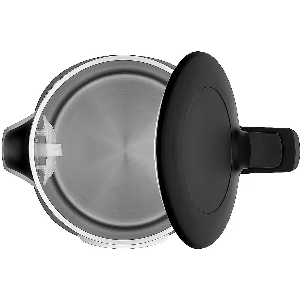 Czajnik jest wyposażony w praktyczny przycisk do łatwego otwierania pokrywy jednym naciśnięciem, co znacznie ułatwia jego napełnianie wodą. Gładkie dno z ukrytą grzałką minimalizuje osadzanie się kamienia i zanieczyszczeń. W pełni obrotowa podstawa umożliwia wygodne ustawienie czajnika z dowolnej strony, a jednocześnie zapewnia miejsce do przechowywania nadmiaru przewodu, dzięki czemu blat kuchenny pozostaje przejrzysty i uporządkowany. Markowy konektor zapewnia długą żywotność