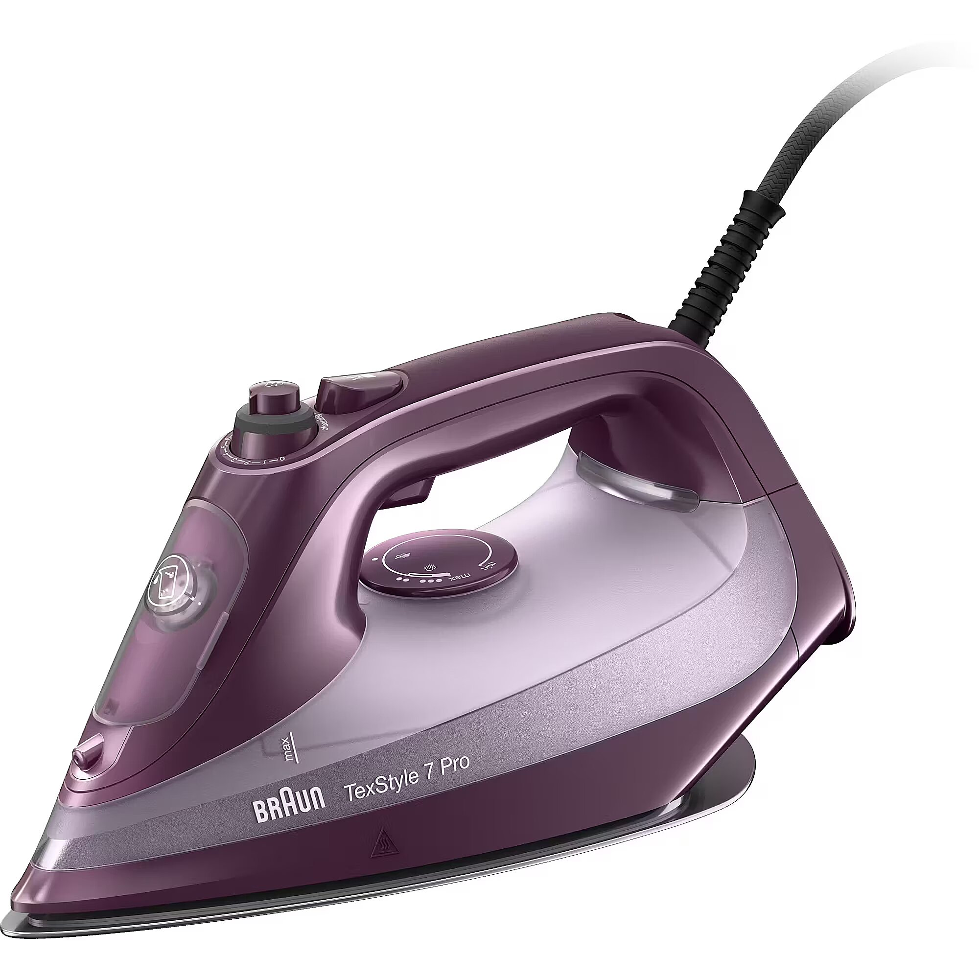 ShortSummaryDescription - Braun TexStyle 7 Pro SI 7181 VI, Dry & Steam iron, EloxalPlus soleplate, 2.5 m, 230 g/min, Violet, 50 g/min