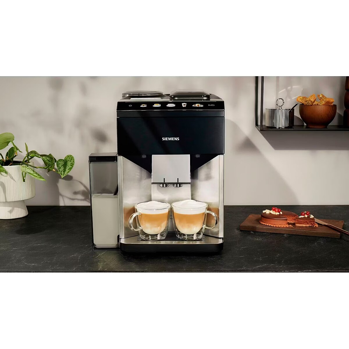 LongSummaryDescription - Siemens EQ.500 TQ517D03. Product type: Espresso machine, Coffee maker type: Fully-auto, Water tank capacity: 1.9 L, Coffee input type: Coffee beans, Reservoir for brewed coffee: Cup, Capacity in cups: 2 cups, Built-in grinder. Display type: TFT. Power: 1500 W. Product colour: Black, Stainless steel