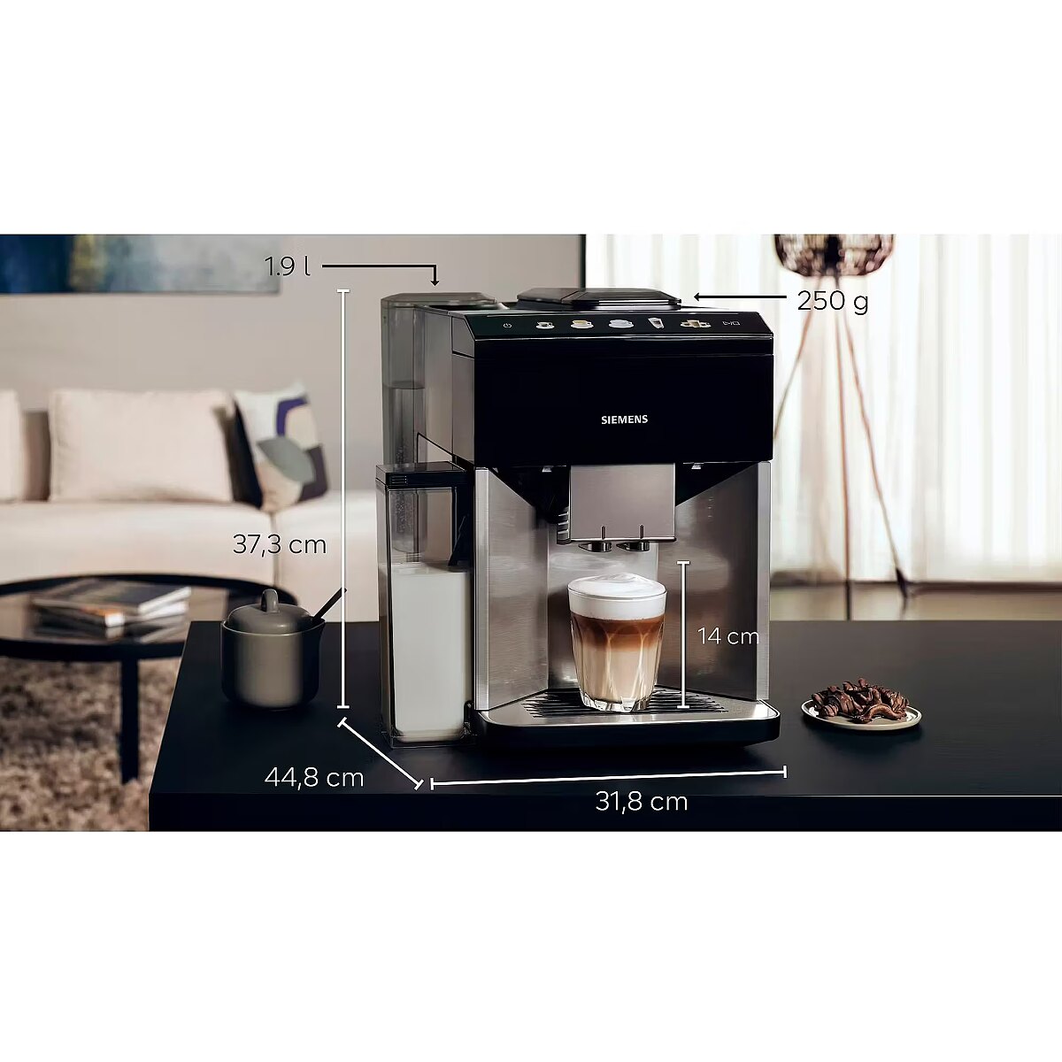 ShortSummaryDescription - Siemens EQ.500 TQ517D03, Espresso machine, 1.9 L, Coffee beans, Built-in grinder, 1500 W, Black, Stainless steel