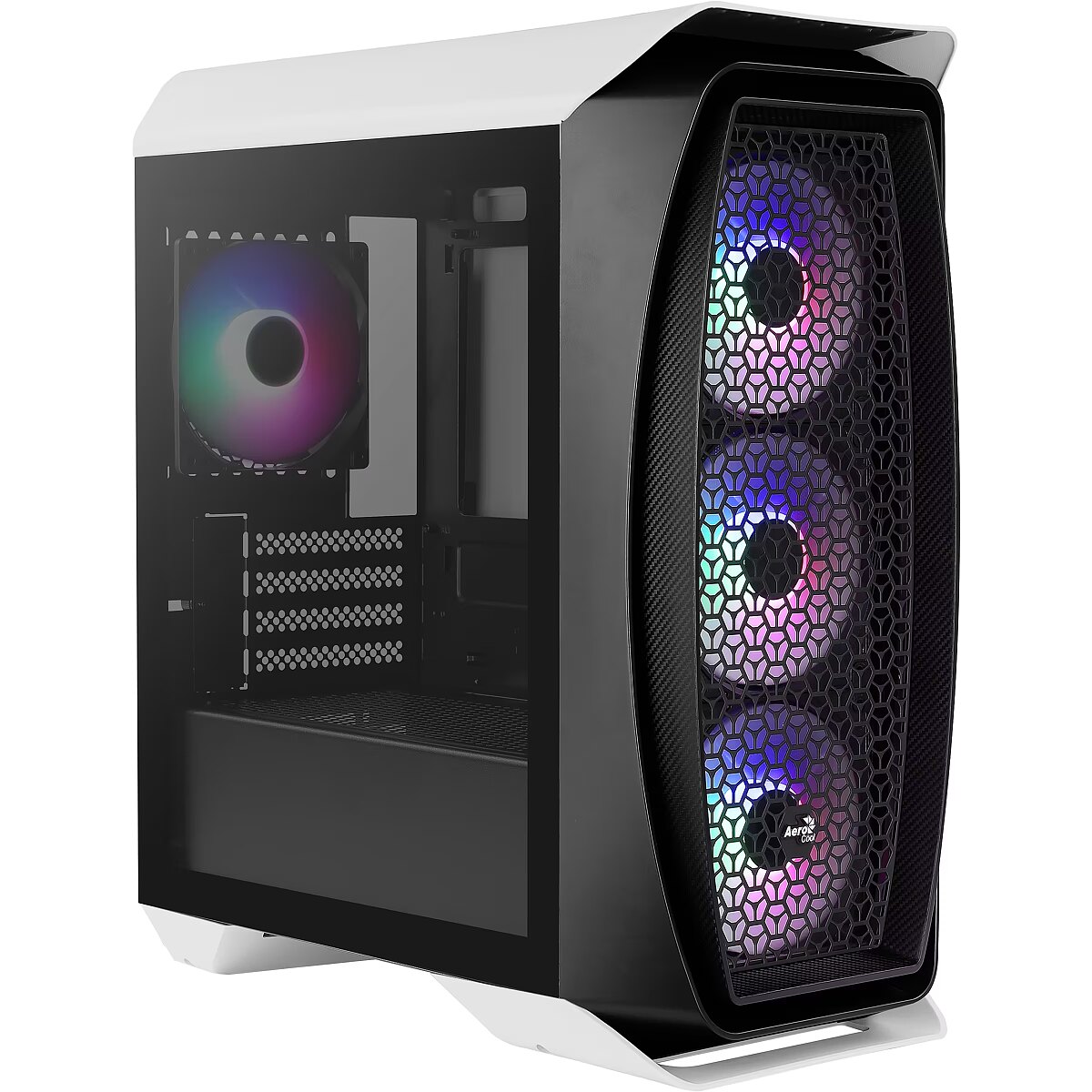 LongDesc - High-performance mid tower case with full tempered glass side panel to showcase the inside of your rig. Acrylic front panel design allows for clear viewing of your front LED fans. Air vents on the front panel provide superior air flow and circulation. With support for E-ATX motherboards, this case is built for maximum performance.Comes equipped with two 20cm Addressable RGB fans in the front and one 12cm Addressable RGB fan in the rear of the case. Addressable RGB fans can be controlled using one of two ways: RGB LED control button or Addressable RGB motherboard. Comes equipped with 6-Port RGB Control Hub.ADDRESSABLE RGB COMPATIBLETake full control of your Addressable RGB fans using one of two ways:- RGB LED control button on top of the case- Addressable RGB motherboardTHREE ADDRESSABLE RGB FANS INCLUDEDComes equipped with two 20cm Addressable RGB fans in the front and one 12cm Addressable RGB fan in the rear of the case.COMES EQUIPPED WITH DUO FANSFeaturing Double RGB LED rings around the fan and circling the center of the fan, the Duo 20 and Duo 12 fans deliver a stylish and vibrant lighting experience.6-PORT RGB CONTROL HUBFeatures a 6-port hub with PWM control functions and allows you to connect up to six 6-Pin AeroCool Addressable RGB fans and up to two 3-Pin Addressable RGB accessories with +5V ARGB connector.Access 16.8 million colors using compatible Addressable RGB motherboard (Asus Aura Sync, MSI Mystic Light Sync, and Gigabyte RGB Fusion).ADDRESSABLE RGB RECEPTOR CABLE INCLUDEDComes with a receptor cable to connect your hub with compatible Addressable RGB motherboards.- ARGB MB Connector (For all other ARGB MBs such as ASUS, MSI, etc.)- ARGB MB Connector (Gigabyte RGB Fusion)- 4-Pin Hub Connector- PWM 4-Pin ConnectorPOWER CABLE INCLUDEDComes with a cable to power the hub.- SATA Power Connector- 4-Pin Hub Power ConnectorACRYLIC FRONT PANEL DESIGNFeaturing an acrylic front panel design, this case allows for clear viewing of your front LED fans.IMPROVED AIR VENTILATIONAir vents on the front panel provide superior air flow and circulation.FULL TEMPERED GLASS SIDE PANELComes equipped with a full tempered glass side panel to properly showcase the inside of your rig.E-ATX MOTHERBOARD SUPPORTWith support for E-ATX motherboards, this case is built for maximum performance.BUILT FOR HIGH PERFORMANCE- Supports E-ATX, ATX, Micro-ATX, and Mini-ITX motherboards- Supports CPU coolers up to 168mm- Supports high-end graphics cards up to 358mm (without radiator)DUAL CHAMBER DESIGNBuilt with a dual chamber design to direct heat away from the main chamber for more effective all-around cooling.AIR COOLINGSupports air cooling in the front, top, and rear of the case to enhance cooling performance.- Front: 120mm x 3 or 140mm x 3 or 200mm x 2 (Includes 200mm Duo Fan x 2)- Top: 120mm x 2 or 140mm x 2 (Optional)- Rear: 120mm x 1 (Includes 120mm Duo Fan x 1)LIQUID COOLINGSupports liquid cooling in the front, top, and rear of the case for maximum efficiency cooling.- Front: 120/240/280/360mm Radiator (Optional)- Top: 120/240mm Radiator (Optional)- Rear: 120mm Radiator (Optional)CONVENIENT ACCESS TO YOUR MEDIAQuick and easy access to LED control button, 2 x USB 3.0, HD audio and mic ports, and power button.STORAGE CAPABILITYSupports up to 2 x 3.5” HDDs (2 x 2.5”/3.5”) and 4 x 2.5” SSDs (2 x 2.5” and 2 x 2.5”/3.5”).EASY MAINTENANCERemovable dust filters on the front, top, and bottom of the case for fast and convenient cleaning.