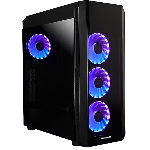 Description - The SCORPION III is the next iteration of the highly successful Scorpion gaming case by CHIEFTEC. Upgrading all four Ring Fans from the Scorpion 2 to full Rainbow Fans from our Tornado fan set, the Scorpion 3 shines in a brand-new light. An additional upgrade is the easy-install tempered glass panel. The innovative slide-to-open mechanism with thumbscrews in the back allows for the tempered glass side panel to be easily removed and installed. With these innovative new features, while building on the highly commended quality and feature set from the Scorpion case, the Scorpion 3 takes gaming by CHIEFTEC to yet another level. 4x 120mm A-RGB Rainbow fans pre-installed 2x tempered glass panels (front & side) 3PIN +5V A-RGB M/B Sync via RGB control hub Clean cable management options USB 3.2 Gen2x2 Type-C Connector