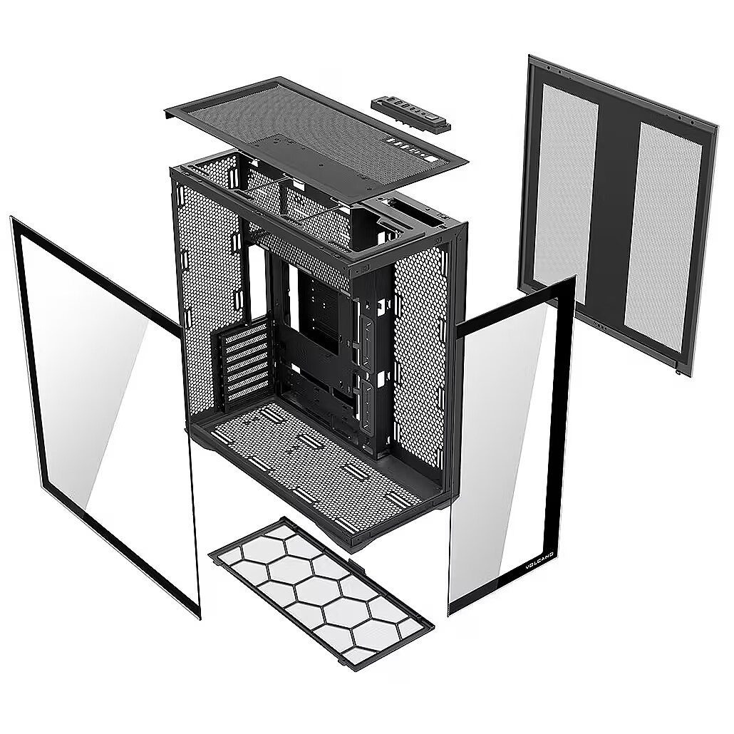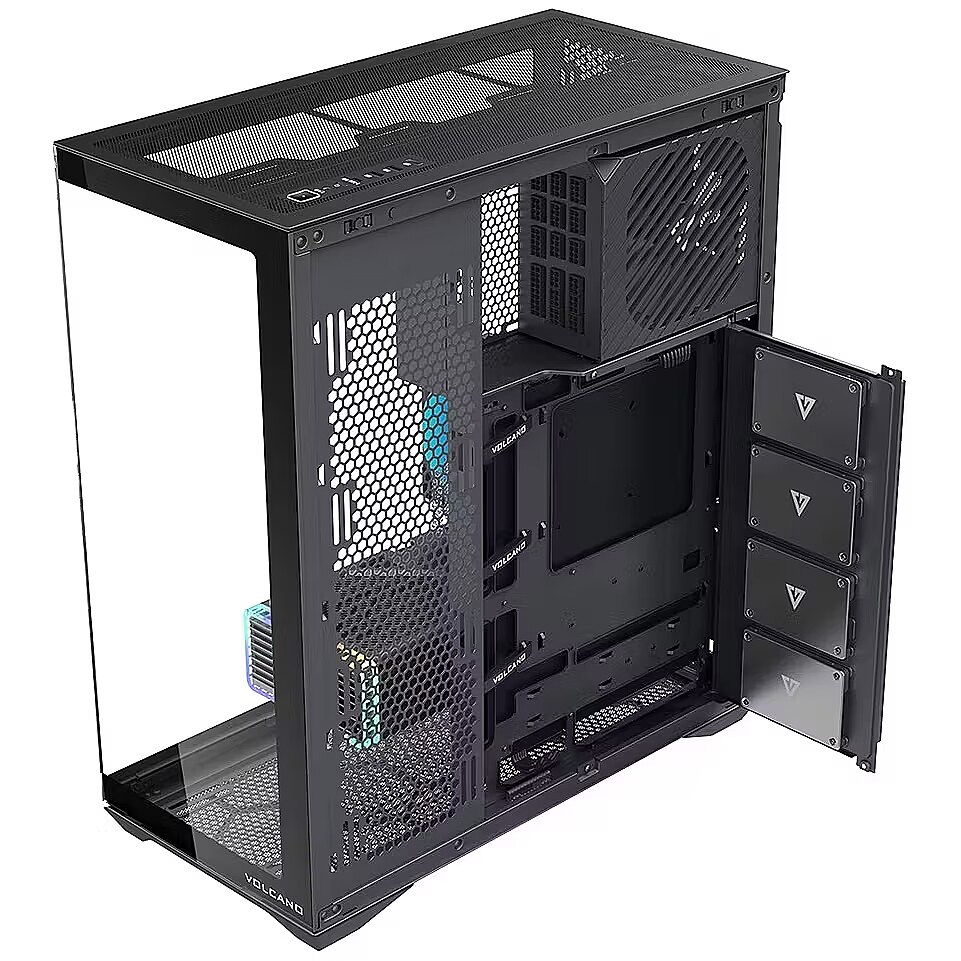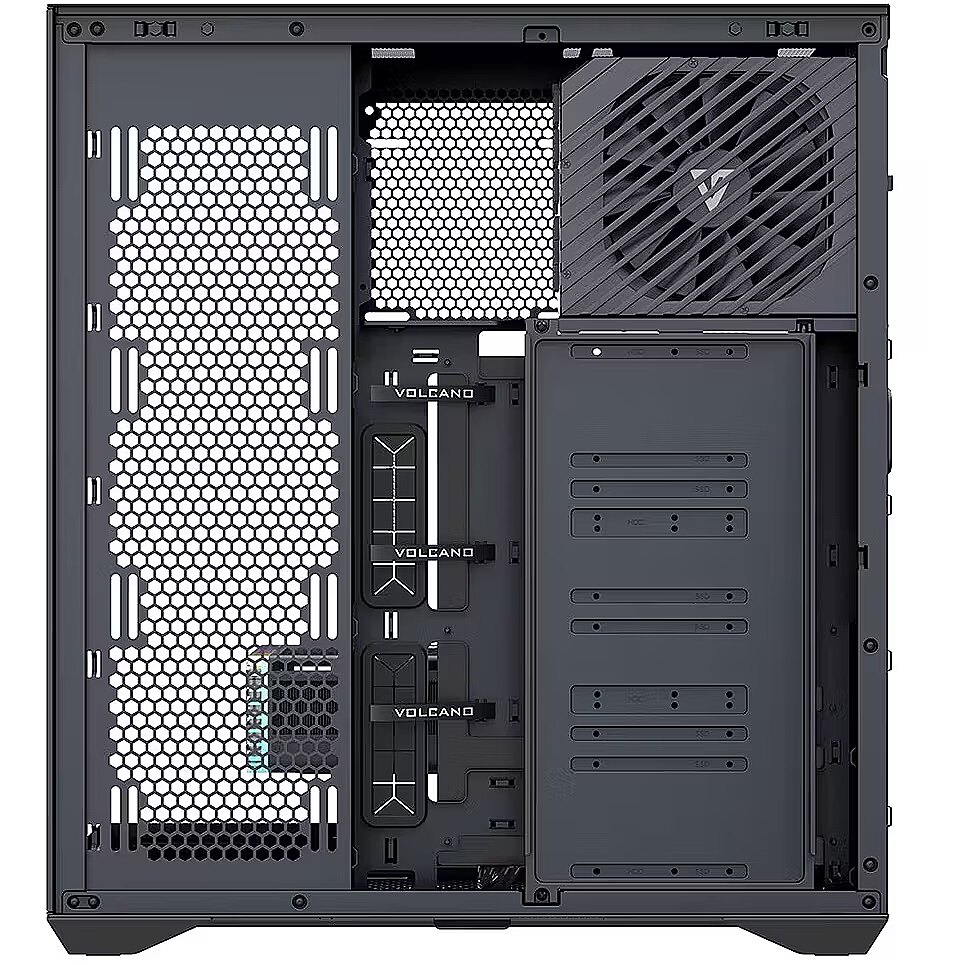 Description - Volcano Space XL Full Tower Case black Youre investing in a top-tier processor, a powerful graphics card, fast RAM, and a solid motherboard, so why would you hide them from yourself and other household members? The MODECOM Volcano Space XL Full Tower is a case designed so that your computer can finally look truly impressive. The front and side tempered-glass panels create a full visual showcaselike hardware displayed in a glass cabinet. Every detail, every ARGB effect (if you install illuminated fans), and every line of your configuration is visible and highlighted by this majestic chassis. MODECOM Volcano Space XL was designed for those who love personalization and perfect internal cable management, while also needing a spacious Full Tower case. Support for motherboards with reversed connectors allows you to build a modern interior without having to expose cables. Thanks to snap-on panels, you gain quick access to the inside. Installing components, upgrading hardware, and cleaning the interior become even easier. The spacious interior gives you full freedom: large E-ATX boards, robust water cooling (up to 420 mm), long graphics cards, and all the components you need for your gaming setup. With the MODECOM Volcano Space XL, your computer will know no limitsand it will look exactly the way it deserves. If you love technology, need plenty of room for expansion, and want your hardware always within sight, the MODECOM Volcano Space XL Full Tower is made for you. Especially in the Volcano Space XL NF version, which gives you complete freedom to configure cooling according to your preferences, as it comes without pre-installed fans. Because bigger can do more.