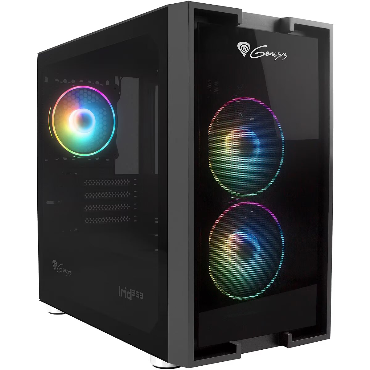 Lühikokkuvõte - GENESIS Irid 353 ARGB, mikrotorn, PC, must, micro ATX, Mini-ITX, akrüülnitriilbutadieenstüreen (ABS), teras, karastatud klaas, mängud