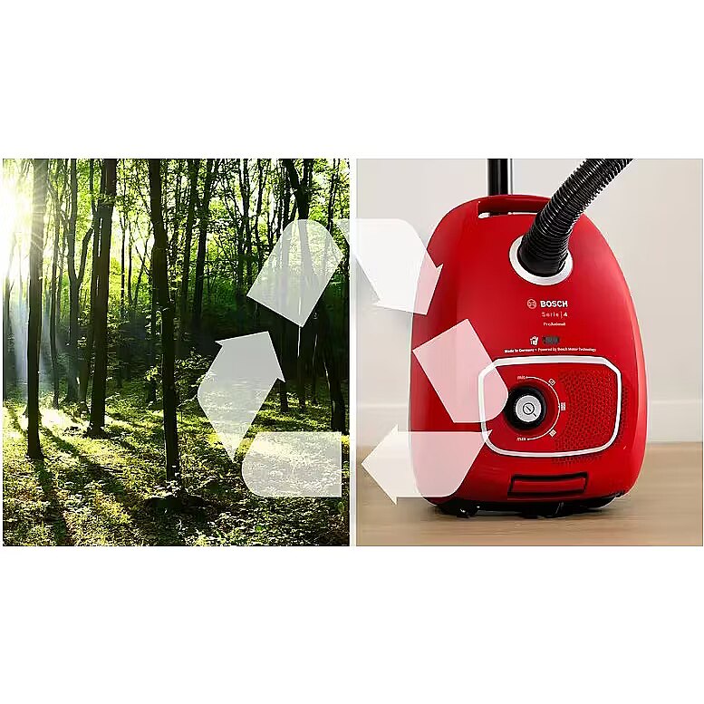 Description - Technologia Silników Bosch - moc "Made in Germany". Ciesz się wysoką i stałą wydajnością dzięki odkurzaczom marki Bosch: Projektując i produkując nasze wysokowydajne silniki w Niemczech od ponad 65 lat, oczekujemy, że odkurzacz nie tylko zapewni optymalne rezultaty sprzątania, ale także będą służyć przez lata - co zapewniamy naszą 10-letnią gwarancją na silnik. Łatwe usuwanie sierści ze wszystkich rodzajów podłóg. Wiemy, że sierść zwierząt potrafi być naprawdę uciążliwa, zwłaszcza kiedy uparcie przylega do każdego rodzaju podłóg. Z pomocą przychodzi nasza turboszczotka AirTurbo Pro, która została specjalnie zaprojektowana do odkurzania sierści ze wszystkich powierzchni o 50% szybciej. Od teraz będziesz mógł cieszyć się czystym domem i nie będziesz musiał martwić się o uporczywą sierść zwierząt. Sprzątanie nigdy nie było tak proste i szybkie. Akcesoria zawsze pod ręką. Zyskaj wygodę odkurzania dzięki zintegrowanemu schowkowi na akcesoria. Ssawka szczelinowa i ssawka do tapicerki są bezpośrednio wpasowane wewnątrz obudowy odkurzacza, dzięki czemu zawsze masz je pod ręką, gdy ich potrzebujesz. Zmieniaj akcesoria bez problemu - w zależności od wykonywanych czynności. A po odkurzaniu, nie musisz przechowywać akcesoriów oddzielnie od odkurzacza. Świeże powietrze podczas odkurzania. Worki wymienne AirFresh zapobiegają rozwojowi nieprzyjemnych zapachów dzięki technologii węgla aktywnego. Filtrują aż 99,9% drobnych cząsteczek kurzu. Praktyczne zamknięcie worka zapewnia jego higieniczna wymianę. Szczególnie polecany dla właścicieli zwierząt domowych. 99,9% skuteczności odkurzania z siłą huraganu. Doskonałe rezultaty odkurzania wymagają czegoś więcej niż tylko mocy. Skuteczne odkurzanie wymaga współdziałania wszystkich części odkurzacza - silnika o dużej prędkości, wydajnej ssawki, zoptymalizowanego uszczelnienia oraz filtra. Nasz mocny silnik Bosch wytwarza pod ssawką przepływ powietrza o prędkości do 150 km/h. Wszystkie komponenty są tak zoptymalizowane, aby zapewnić skuteczność odkurzania na poziomie powyżej 99,9%. Ta wyjątkowa wydajność zapewnia łatwe odkurzanie i doskonałe rezultaty sprzątania. Antyalergiczny filtr HEPA - lepsza jakość powietrza. Wierzymy, że dobra jakość powietrza jest ważna. Oddychaj swobodnie z filtrem antyalergicznym HEPA: dzięki niemu powietrze wydmuchiwane z odkurzacza jest czystsze niż powietrze otoczenia. Filtruje 99,95% drobnych cząstek kurzu, bakterii i zanieczyszczeń - dlatego jest idealny dla alergików. Przyjazny dla środowiska: filtr jest zmywalny, a ramka filtra jest wykonana w 100% z tworzywa sztucznego pochodzącego z recyklingu. Możesz go użyć kilka razy, zmniejszając w ten sposób dodatkowe koszty i oszczędzając materiały związane z jego wymianą. Jeśli potrzebujesz nowego filtra, po prostu wymień jego wkład. Optymalne rezultaty odkurzania na wszystkich rodzajach podłóg dzięki regulacji mocy silnika. Wydajne zarządzanie pracą silnika dzięki Power Control - precyzyjna regulacja i cechy haptyczne pokrętła gwarantują płynną zmianę mocy podczas odkurzania dywanów i twardych podłóg, zapewniając optymalną skuteczność odkurzania. Rzadsze wymiany worków i mniejsze koszty. Poczuj moc odkurzania z naszym workiem na kurz w rozmiarze XL. Nasz odkurzacz został zaprojektowany, aby pomieścić worek o dużej pojemności, wydłużając tym samym czas odkurzania na jednym worku dzięki temu zapewnia mniejsze koszty związane z jego wymianą. Oszczędność zasobów i długotrwała jakość. Marka Bosch jest zaangażowana w zrównoważony rozwój, dlatego jej urządzenia są opracowywane z myślą o ochronie środowiska i oszczędności zasobów. Dlatego ten odkurzacz jest wykonany w 32% z tworzyw pochodzących z recyklingu, podczas gdy jego opakowanie składa się w 95% z papieru pochodzącego z recyklingu - zawiera również foliowe worki, które są kompostowalne i nadają się ponownego przetworzenia. Natomiast dzięki trwałemu i wysokiej jakości silnikowi Bosch wyprodukowanemu w Niemczech, będziesz cieszyć się urządzeniem przez długi czas.