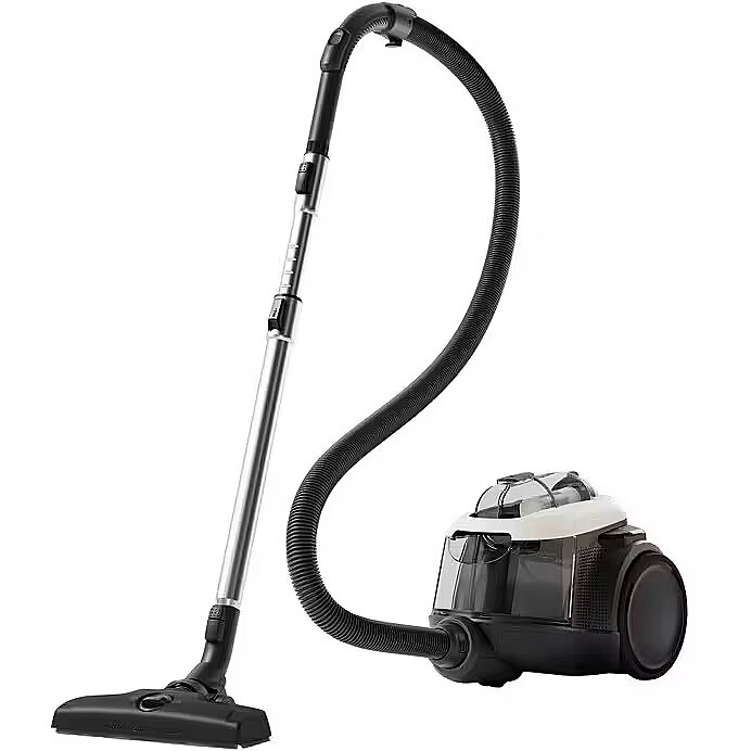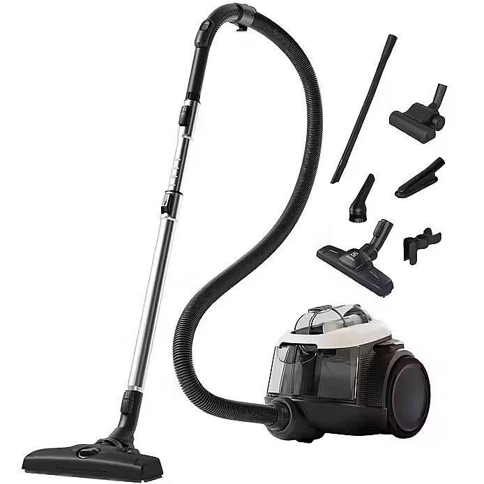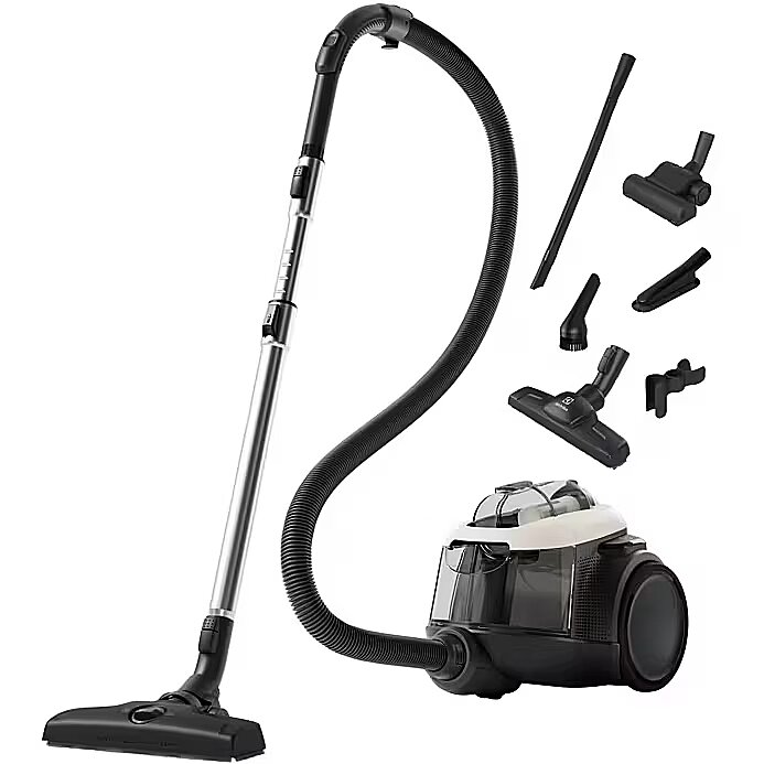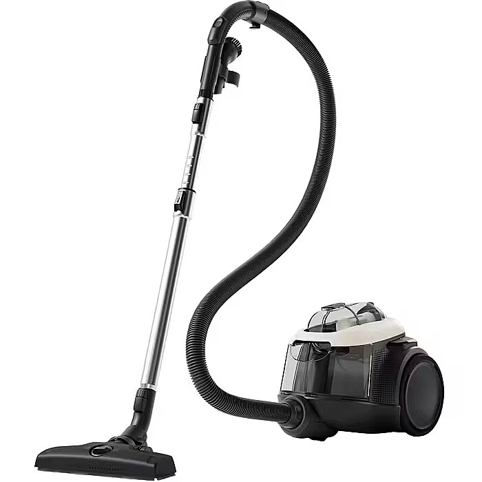 LongSummaryDescription - Electrolux EL61H4SW. Ash container type: Bagless, Product colour: Black, White, Cable length: 9 m. Cleaning type: Dry, Operating radius: 12 m, Vacuum: 18 kPa. Power consumption (typical): 700 W. Width: 283 mm, Depth: 422 mm, Height: 304 mm