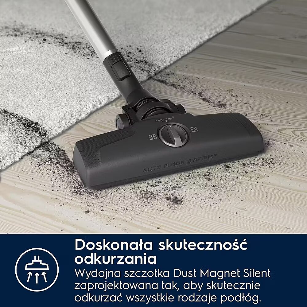 *Põhineb mikroosakeste (0,3–10 mikronit) filtreerimise sisemistel testidel vastavalt standardile EN 60312-1, kasutades standardseid liiva-/tolmuosakesi. Kompaktne tolmuimeja Tänu kompaktsetele mõõtmetele ja võimalusele hoida seda vertikaalselt või horisontaalselt on tolmuimeja hoiustamine väga mugav. Lihtne manööverdamine Suured kummist rattad muudavad manööverdamise lihtsamaks ja kaitsevad pindu tolmuimejaga puhastamise ajal, muutes puhastamise nauditavamaks.