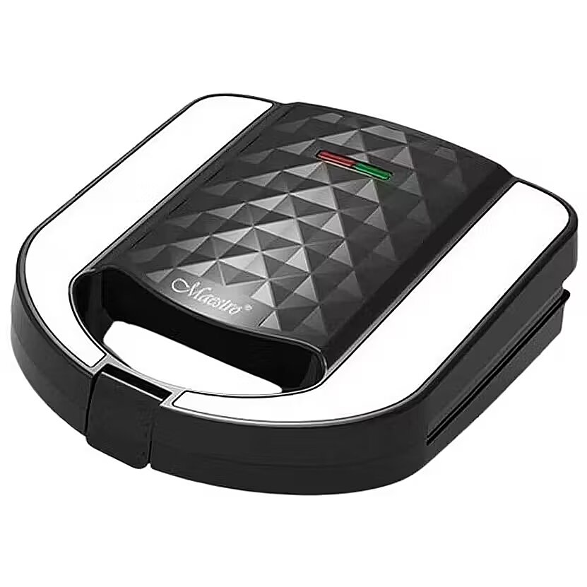 Description - The Maestro MR-709 sandwich maker is a versatile kitchen appliance that allows you to prepare delicious sandwiches, waffles, cookies, and nut-shaped biscuits. The device has a power of 750 W, ensuring fast and efficient heating. The set includes 3 interchangeable plates: grill, waffle, and nut-biscuit plates, which makes it highly functional. The housing is made of plastic combined with steel, providing durability and an attractive appearance. The plates measure 21.5 × 11.5 cm, allowing you to prepare generous portions of food. The power cord is 65 cm long, making it easy to connect the appliance to a kitchen outlet. The dimensions of the sandwich maker are 22 × 22 × 8.5 cm, making it compact and easy to store.