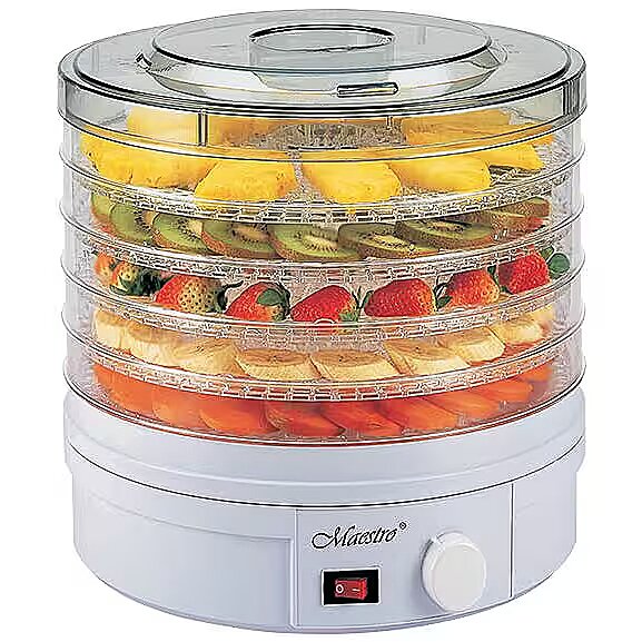 Description - The Maestro MR-765 Mushroom, Vegetable and Fruit Dryer is a powerful 245 Watt appliance ideal for drying a variety of products such as mushrooms, vegetables, fruit, herbs or bread. It is equipped with 5 sieves with a diameter of 32 cm, with the height of each sieve being 3 cm, allowing a large number of ingredients to be dried at the same time.