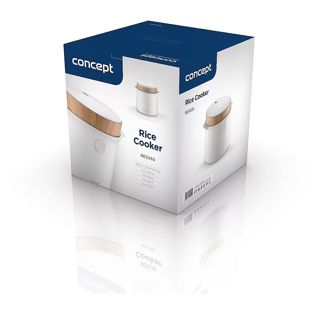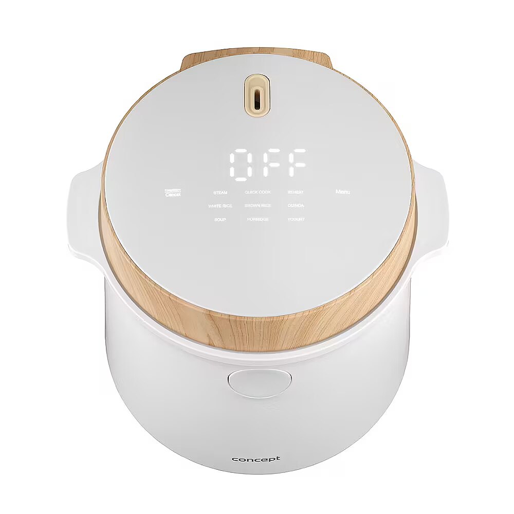 The Concept RE3030 rice cooker combines practical functions with a stylish look that complements any kitchen. Its elegant white design with wood-effect accents will perfectly complement a modern interior. Thanks to its compact dimensions, it can be easily placed on a kitchen counter or in a cupboard, saving space. It's also lightweight and easy to carry, so you can take it to your summer cottage, for example.