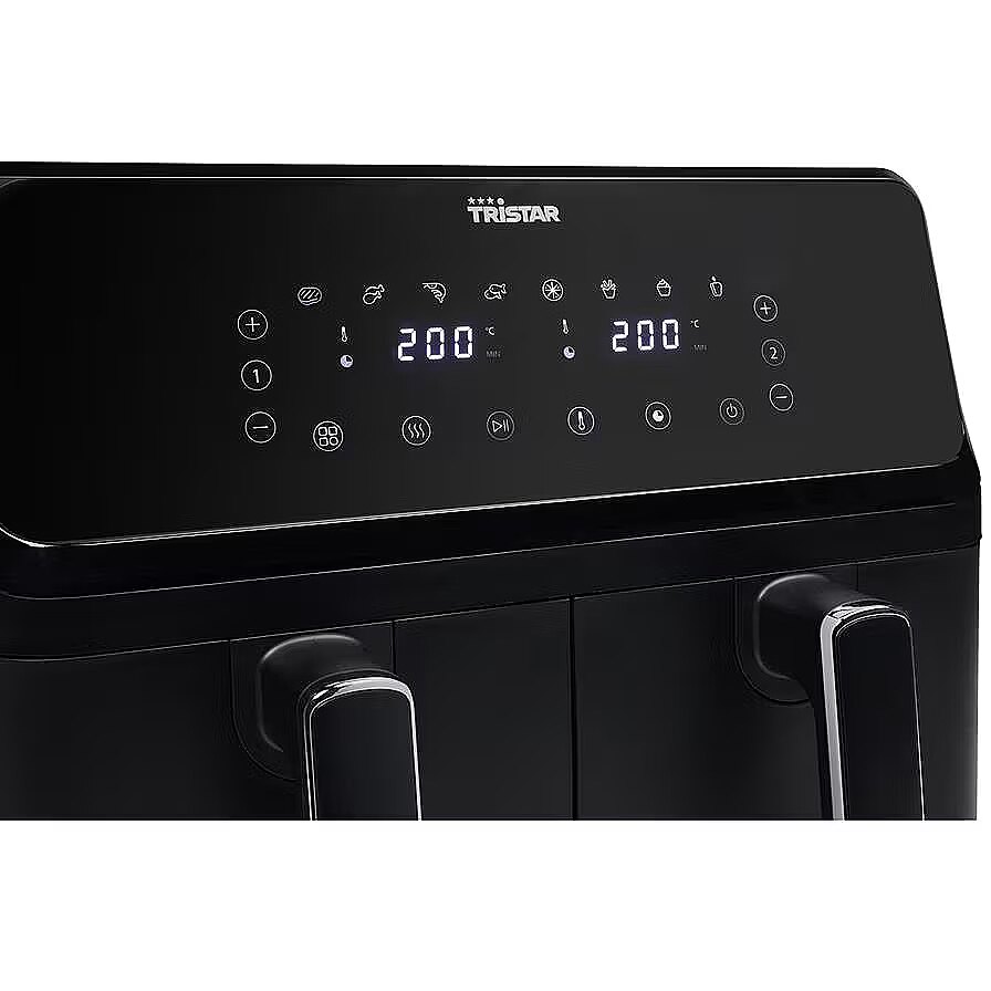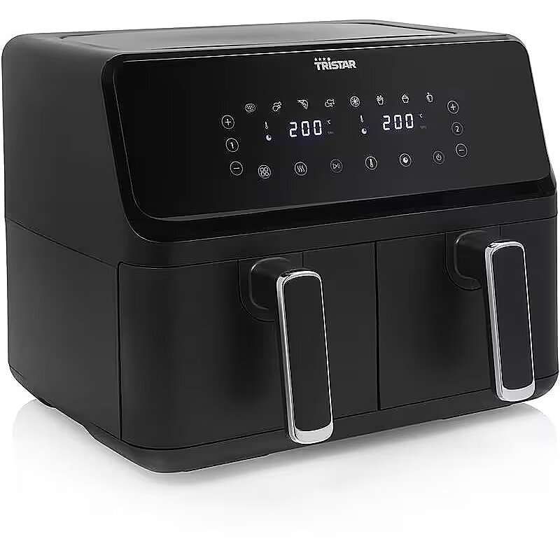LongDesc - The Tristar FR-9026 Double Basket Airfryer has the ability to cook two types of food simultaneously and takes your cooking experience to a whole new level. It is the perfect kitchen appliance for those who love convenience and versatility. Its spacious 8L capacity allows you to prepare larger meals, making it ideal for families or gatherings. And with a power of 2700W, you can expect fast and efficient cooking every time.Dual cooking convenienceWith the Double Basket Airfryer, you no longer have to choose between frying chicken wings or baking fries. This innovative appliance features two separate baskets, allowing you to cook different foods at the same time. The temperature (80 ⁰C to 200 ⁰C) can be set separately for each basket. Whether you want to fry, bake, grill, or roast, this airfryer has got you covered. Say goodbye to waiting for one batch to finish before starting the next - now you can have it all at once.Large capacity and powerful performanceWith a generous total volume of 8L, this airfryer provides ample space to cook for the whole family. From crispy fries to juicy steaks, you can easily prepare enough food to satisfy everyone's appetite. The 2700W power ensures rapid heating and cooking, saving you time and energy. Whether you're hosting a party or simply cooking for yourself, this airfryer delivers delicious results every time.Convenient features for easy cookingThe Double Basket Airfryer comes with 8 pre-programmed functions, making it incredibly easy to cook a variety of dishes. Simply select the desired function and let the airfryer do the rest. The timer function has a signal up to 60 minutes. The sleek design and user-friendly interface make this airfryer a stylish and practical addition to any kitchen.a, è perfetta per le famiglie numerose. Vuoi preparare delle patatine fritte o degli snack per tutta la famiglia in una volta sola? Prepara patatine, snack, cosce di pollo, chips di patate, pesce e altri piatti in modo ancora più sano senza l'uso di olio. Grazie al suo lussuoso involucro nero opaco, questa friggitrice ad aria non mancherà di farsi ammirare nella tua cucina!Ampio pannello di controllo digitaleQuesta friggitrice ad aria, esclusiva di Tristar, è dotata di un pannello di controllo digitale a sfioramento con schermo LCD, che la rende estremamente facile da usare. Seleziona uno dei 10 programmi di cottura pre-impostati o programma tu stesso il tempo e la temperatura di cottura desiderati. Puoi impostare la temperatura da 80°C a 200°C e il timer con suoneria fino a 60 minuti. Grazie alla potenza di 1350 Watt, la friggitrice raggiunge rapidamente la temperatura desiderata.Ottimi risultatiLa friggitrice ad aria con finestrella Tristar è caratterizzata da una grande capienza che permette di cuocere fino a 1,5 chilogrammi di patatine fritte in una volta sola: più che sufficienti per tutta la famiglia. Grazie alla tecnologia di circolazione dell'aria calda ad alta velocità, si ottiene un risultato molto croccante senza olio o con un po' di olio, rendendo le patatine molto meno grasse e più salutari. Ma non è tutto: con la friggitrice ad aria puoi anche friggere, grigliare o arrostire. Ciò permette di preparare facilmente verdure, carne e pesce nella friggitrice ad aria, ma anche panini, dolci o torte.Comoda finestrella di controlloGrazie alla finestrella integrata, puoi vedere in modo semplice e veloce a che punto è la cottura del tuo delizioso piatto. Così facendo, mantieni sempre un controllo ottimale sul risultato. L'apparecchio è dotato di un elemento riscaldante alogeno che fornisce calore e luce allo stesso tempo. La luce si spegne quando l'apparecchio ha raggiunto la temperatura desiderata. Quando la friggitrice ad aria raggiunge la temperatura, la luce si accende e si spegne ogni minuto.Sicura da utilizzareLa friggitrice ad aria FR-9037 con finestrella di controllo non è solo pratica, ma anche sicura da usare. Grazie alla maniglia ad isolamento termico, è possibile rimuovere il cestello dalla friggitrice ad aria in tutta sicurezza. Questa tecnologia, infatti, impedisce che la maniglia si riscaldi. Infine, la friggitrice è dotata di piedini antiscivolo, in modo da rimanere sempre ben salda sul piano di lavoro.