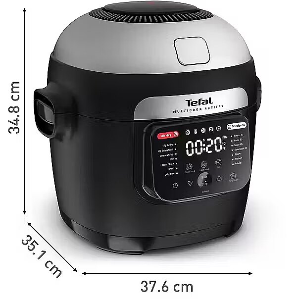 Keskmine kirjeldus ET - Tutvu Tefal Multicook Actifry'ga, mitmekülgne küpsetuslahendus, mis võimaldab lihtsalt valmistada täiuslikke toite. See kombineeritud kuumaõhufritüür ja multiküpsetaja pakub lahendust kõigile Sinu toiduvalmistamise vajadustele: 14 automaatset programmi vaevatuks toiduvalmistamiseks, eksklusiivne Actifry tehnoloogia, mis segab ja praeb üheaegselt, et saavutada iga kord krõbedad ja maitsvad tulemused, mitmekihiline küpsetusplaat, et valmistada terve söök korraga ja palju muud! • Mitmekülgne: Kõik Sinu lemmikud krõbedad toidud ja lõputu hulk tervislikke, maitsvaid eineid