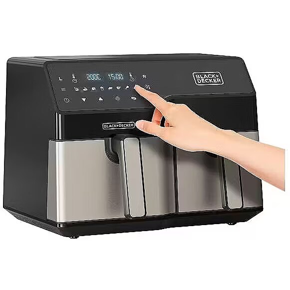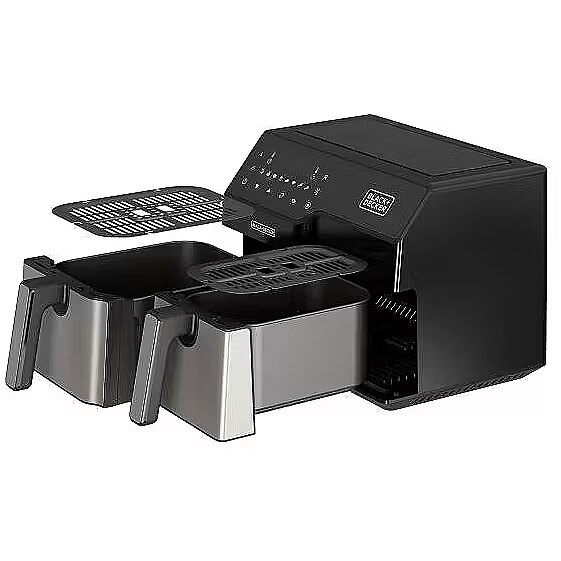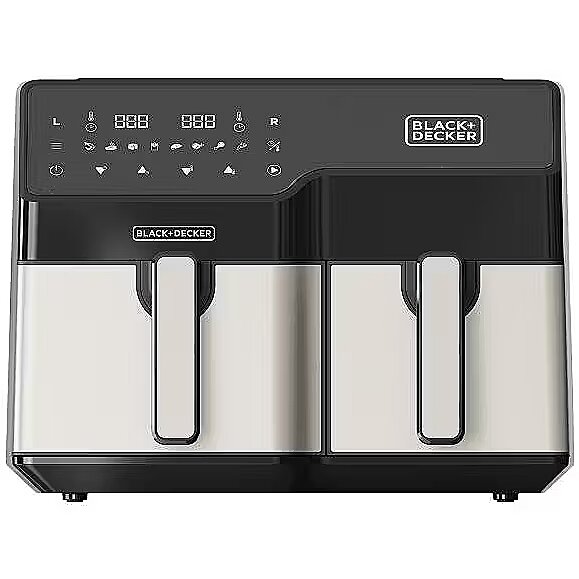 Black+Decker Black & Decker BXAF9000E Double 9 L Stand-alone 2500 W Hot air fryer Black, Stainless steel