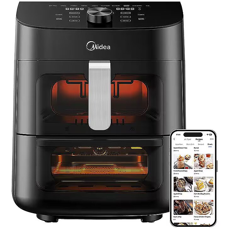 Midea Two Zone Airfryer | MAD1100DADK | Power 1850 W | Capacity 4.4/6.4 L | Rapid Air technology | Black