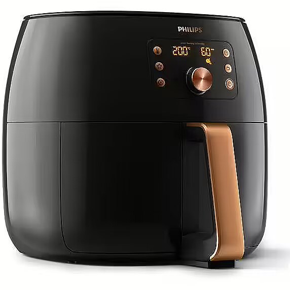 ShortSummaryDescription - Philips HD9867/90, Hot air fryer, 1.4 kg, Single, Black, Copper, Buttons, Rotary, Black
