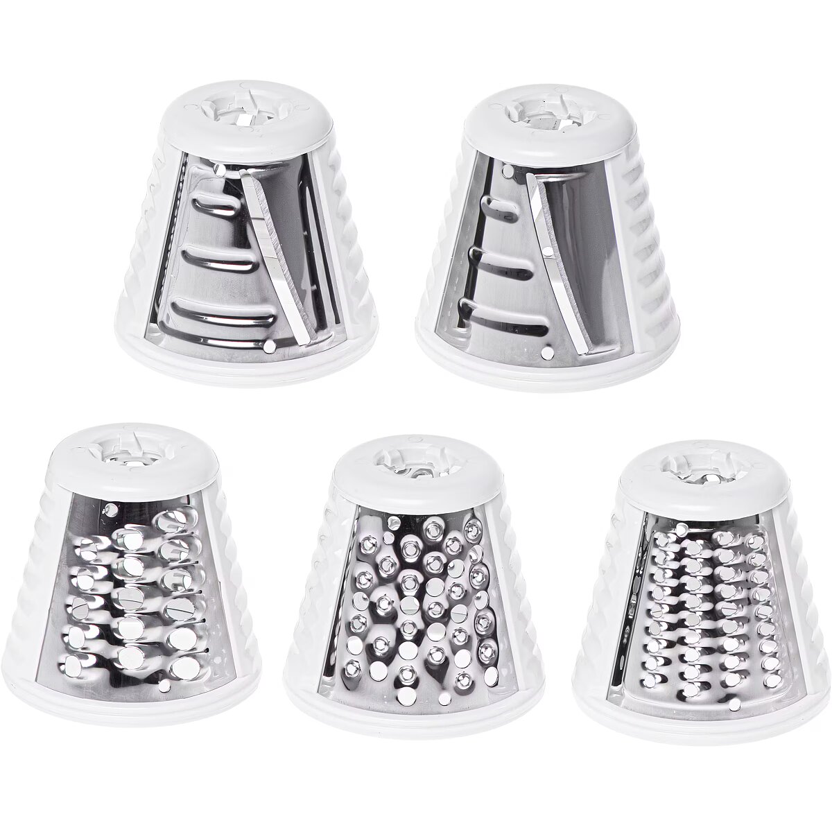 Packaging content > Accessories included - Coarse grater, Fine grater, Fine Slicer, Thick Slicer, Rough Grinder