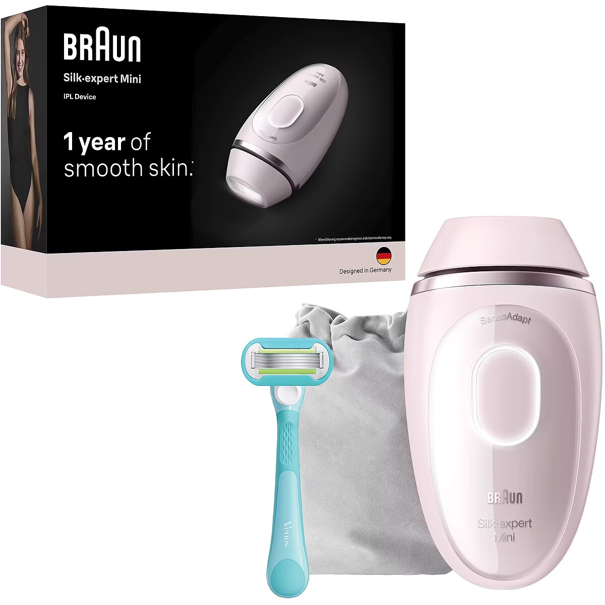 Name - Braun Silk-expert Mini PL1124, hair remover (white/silver, incl. bag + Venus Smooth)