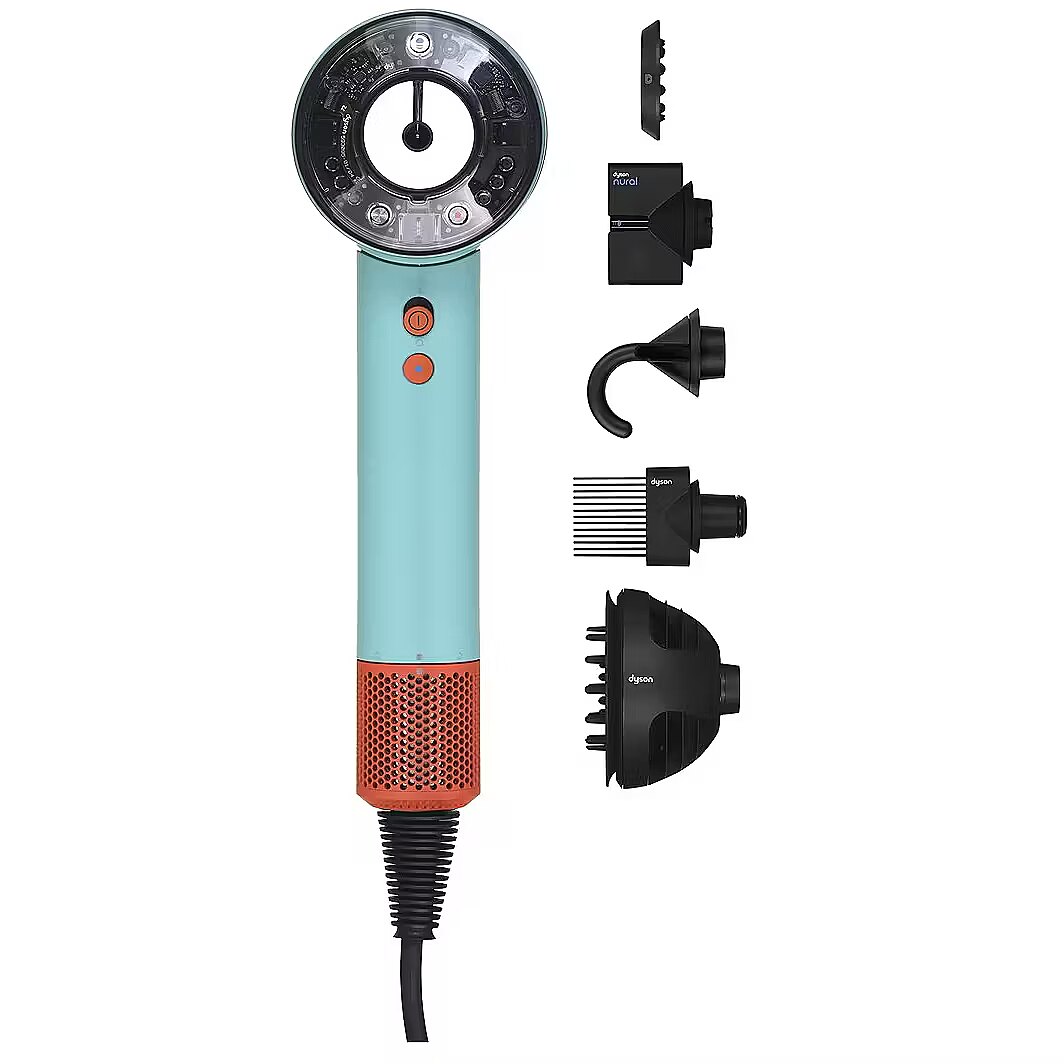 Description - Dyson Supersonic Nural hair dryer(Strawberry Bronze/Blush Pink) Special edition colorway includes a Presentation case. Engineered for healthy hair, a healthy scalp, and to protect new hair growth​ Scalp protect mode auto-adapts heat and airflow for a 3x stronger scalp barrier and more shine.⁴ Engineered to reduce flakes, shedding, and balance oils Fast drying. No heat damage​. Pause detect – decreases airflow when set down Attachment learning remembers your preferences² 5 styling attachments for all hair types