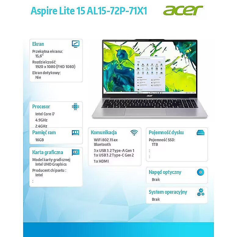 name - Notebook Aspire Lite 15 AL15-72P-71X1 i7-13620H, 15.6, FHD IPS, 16GB DDR5, 1TB SSD, NoOS