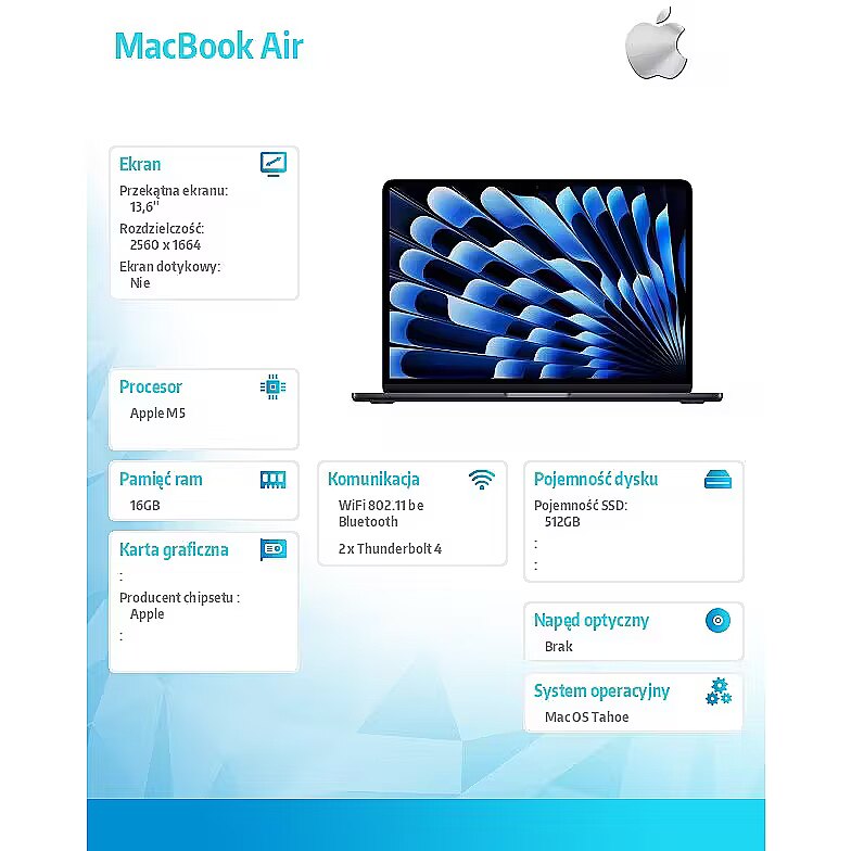 Name - Apple Macbook Air - M5 (10/8) | 13,6" | 16GB | 512GB | Mac OS | Północ