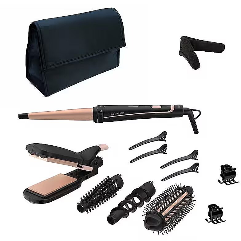 • 14-ühes – kooniline võlukepp lokkide rullimiseks, 32 mm ümmargune soojendusega hari volüümi ja kohvuse jaoks, 2-ühes sirgendaja/kortsutaja moodsa ja muljetavaldava sirgendamise jaoks ning palju muud.