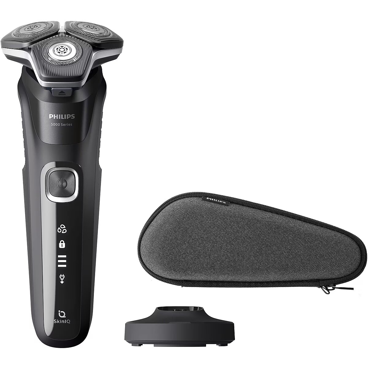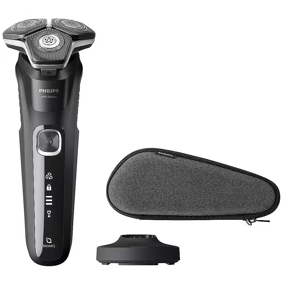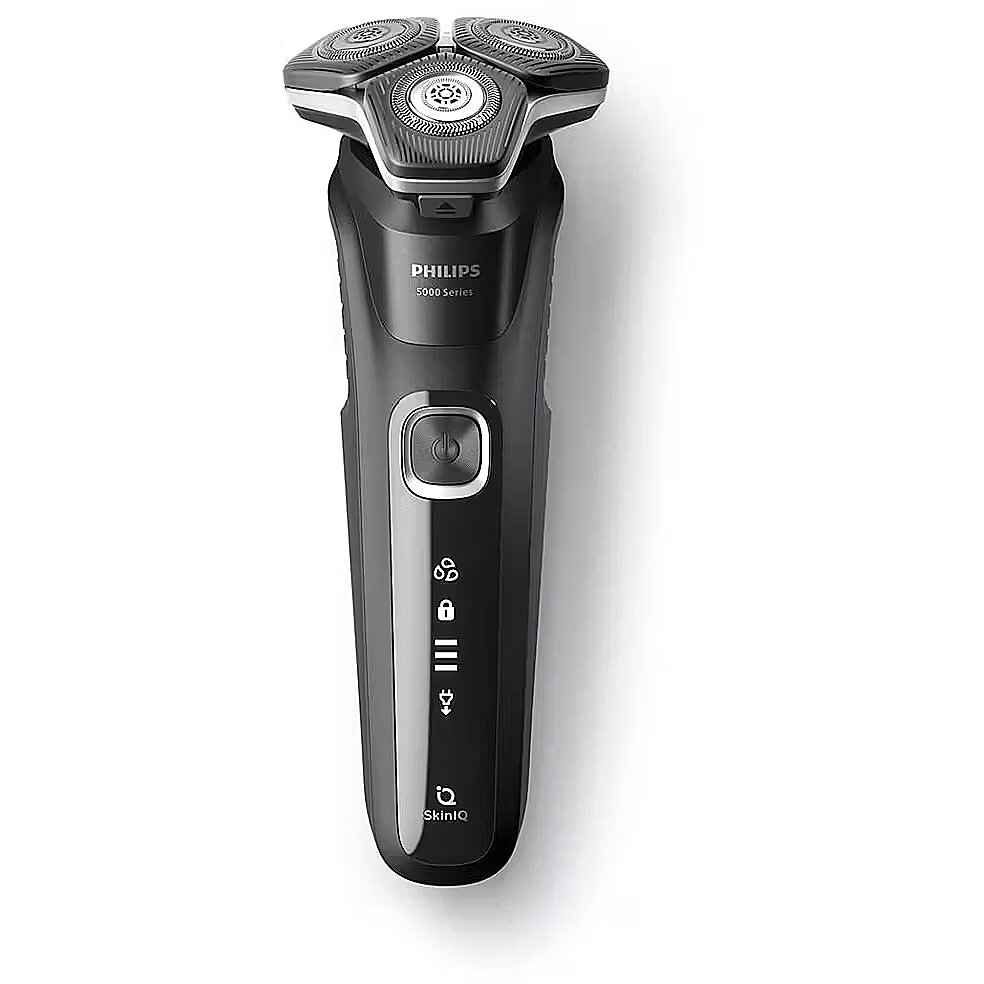LongDesc - Powerful shave, gentle on skinThe Philips Series 5000 delivers a powerful shave, cutting now even more hair per stroke. Equipped with advanced SkinIQ technology, the shaver senses and adapts to your hair density, for improved skin comfort.Powerful performance in every passWith up to 90,000 cutting actions per minute, the SteelPrecision blades shave close, cutting more hair per stroke. The 45 high-performance blades are self-sharpening and made in Europe.Adjusts to your beard for effortless shavingThe intelligent facial-hair sensor reads hair density 500 times per second. The technology auto-adapts cutting power for an effortless and gentle shave.Flexible heads follow your facial contoursFully flexible heads turn 360° to follow your facial contours. Experience optimal skin contact for a thorough and comfortable shave.Engineered for precision and cutting efficiencyThe new shape of the shaving heads is engineered for precision. The surface is enhanced with hair guiding channels, designed to move hair into an effective cutting position.One-touch open for easy cleaningClean the shaver with ease. At the touch of a button, flip open the shaver head and rinse with water.Shave wet, dry and even under the showerAdapt your shaving routine to your needs. With Wet and Dry, you can go for a comfortable dry shave or a refreshing wet shave. You can shave with gel or foam, even under the shower.Precision trimmer integrated in the handleComplete your look using the shaver's pop-up precision trimmer. Integrated into the shaver's body, it's the perfect way to maintain a moustache and trim sideburns.Up to 60 minutes of cordless shaving when fully chargedShave cordlessly for up to 60 minutes after one full battery charge.1 hour charging time and 5 min quick chargeCharge your shaver fully in just 1 hour with the powerful and energy efficient lithium-ion battery. In a hurry? Plug in your shaver for 5 minutes and get enough power for 1 full shave.Shaver comes with Eco passportOur production facility for blades uses 100% renewable electricity, and our packaging is made with recyclable materials. All shavers come with an Eco passport.LED display with icons to use the shaver intuitivelyThe intuitive display shows relevant information, enabling you to get the best experience out of your shaver. This interface includes: 3 level battery status, cleaning advice and travel lock indicator.Convenient chargingAt Philips, we drive sustainability in all aspects of product creation. Our ambition is to reduce waste and minimise the number of USB adapters we put in the market.Strengthened with palladium for longer shaver lifetimeThe motors and batteries of our shavers are engineered for durability, having long-lasting power for a powerful shaveReset your shaver to newWithin two years, your shaver heads cut 9 million hairs on your face. Replace the shaver heads and get back to 100% performance