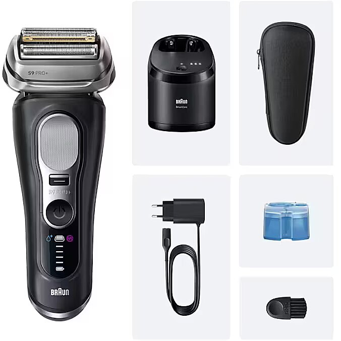 Pikk kokkuvõte - Braun Series 9 Pro+ 9660CC. Habemeajamisüsteem: fooliumhabemeajaja, toote värv: must, hõbedane, tera materjal: roostevaba teras. Toiteallikas: vahelduvvool/aku, aku tehnoloogia: liitium-ioon (Li-Ion), aku tüüp: sisseehitatud aku. Laius: 66 mm, sügavus: 44 mm, kõrgus: 168 mm. Pakendi tüüp: Karp. Kogus pakendis: 1 tk
