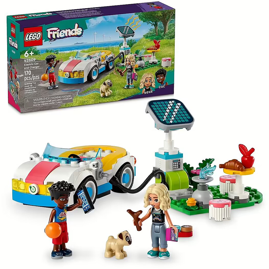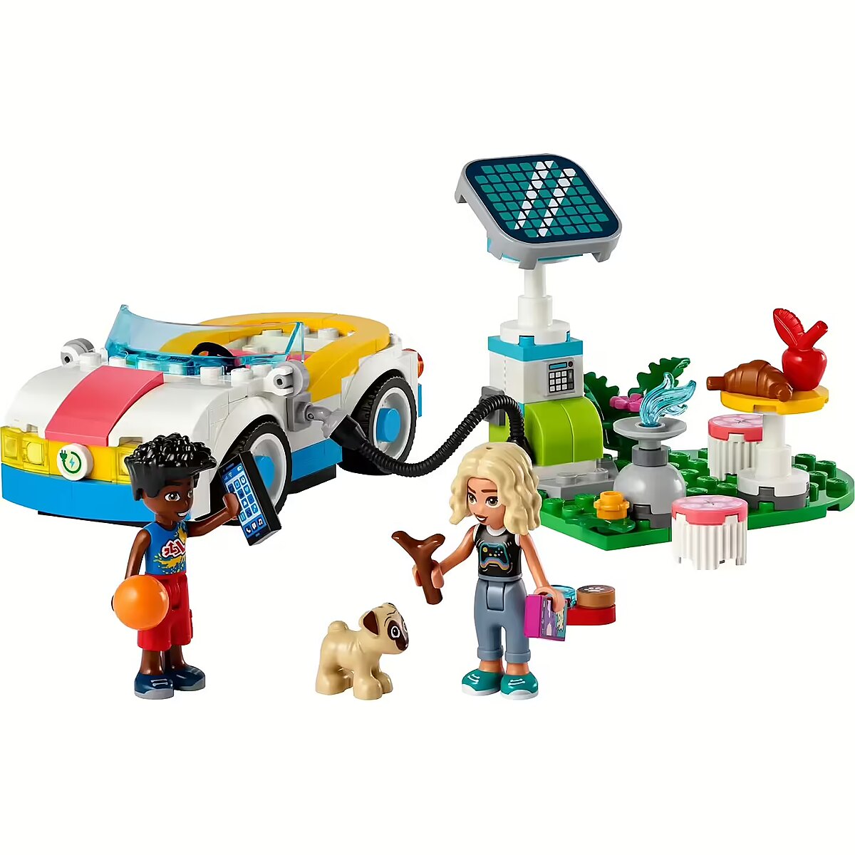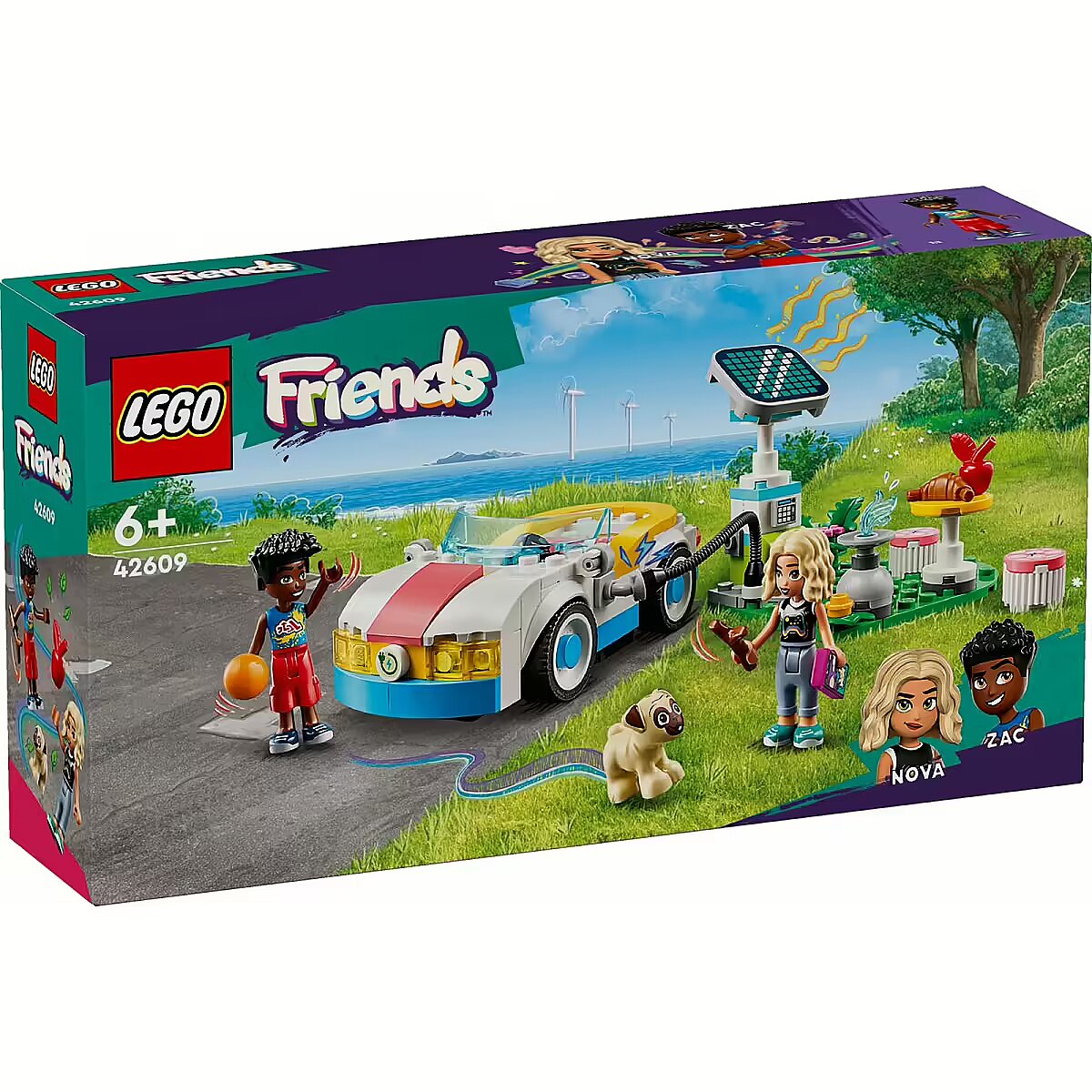 Technical_details - Sustainable mobility is also playing an increasingly important role in Heartlake City. This set from the LEGO Friends series includes a buildable electric car with a charging station and solar panel. The toy electric car can be connected to the charging point using the connector. The car has seats for two minifigures and a dog. Accessories can be stored under the opening hood of the trunk - and there are plenty of them in this set: a table and two chairs invite the minifigures Zac and Nova to a picnic. There are bowls for food and water for dog Django. There are also mobile phones, a stick, a ball, an apple and a croissant as accessories. This set contains 170 pieces and can be combined with other sets from the Friends series. Item no.: 100012201 Kind of construction toy EAN 5702017589305 Manufacturer no. 42609 Friends series Parts 170 pieces Age recommendation from 6 years Target group school children Material: Plastic Warnings Warning: Not suitable for children under 36 months! Caution: Danger of suffocation due to small parts that can be swallowed! Further information The electric car is 4 cm high, 12 cm long and 6 cm wide.