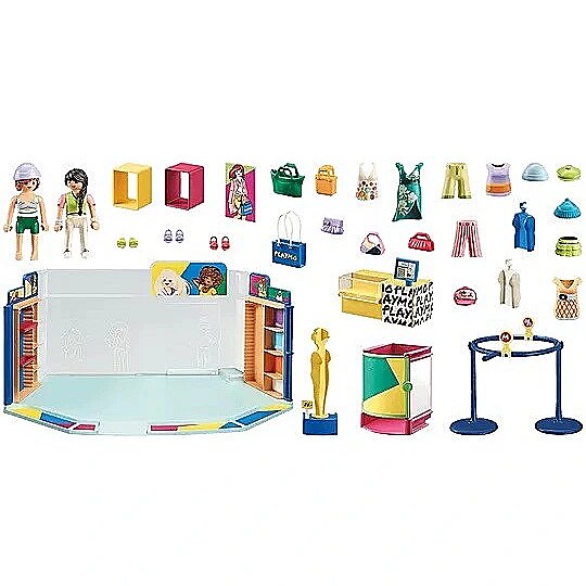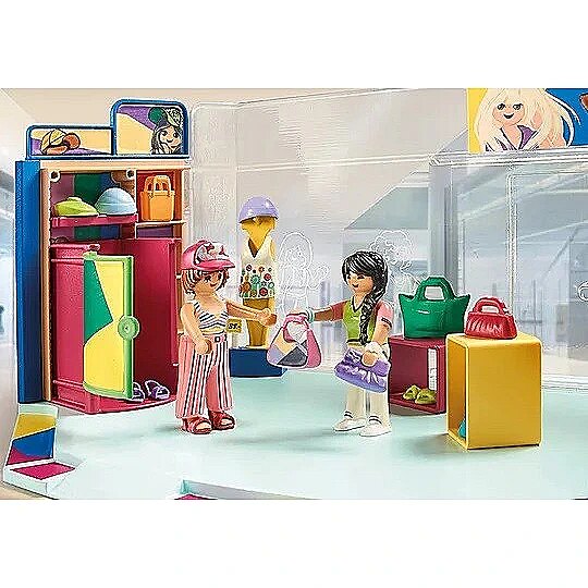 Wybierz się na zakupy w nowoczesnym Butiku odzieżowym PLAYMOBIL. Ten ciekawy zestaw do zabawy zaprasza dzieci do odkrycia radości z zakupów. Dwupiętrowy butik oferuje wiele możliwości kreatywnego odgrywania ról: Na parterze można oglądać i wybierać ubrania oraz akcesoria, a na piętrze przymierzać je w przymierzalni i przeglądać się w stojącym lustrze. Duży wybór daje możliwość tworzenia coraz to nowych strojów. Wspaniała zabawa dla małych fanek mody w wieku od 4 lat.