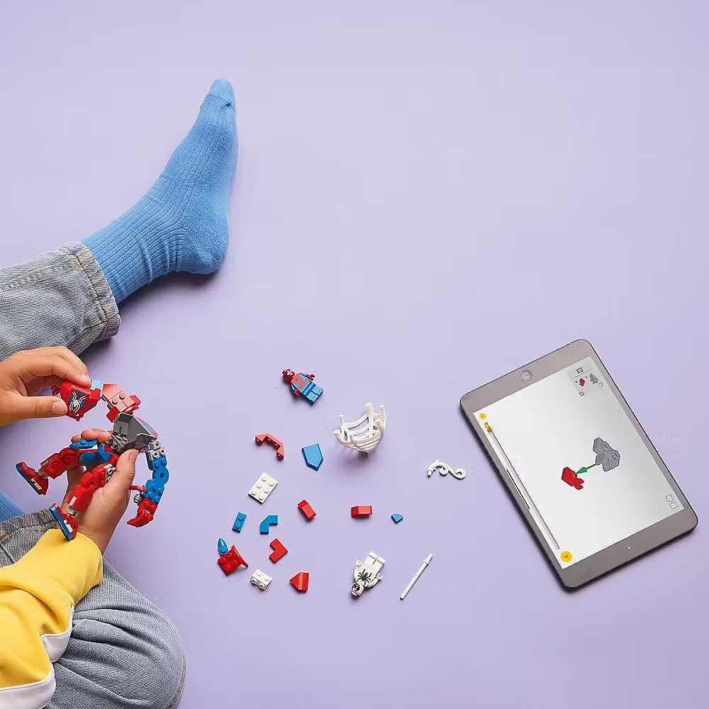 This LEGO Marvel playset comes with 2 minifigures: Spider-Man, and Anti-Venom with his tentacled hands. The buildable mech has movable arms, legs and fingers. Kids open the mechs torso to access the cockpit where the Spider-Man minifigure can be placed. The set includes a large flexible web that can trap the Anti-Venom minifigure and fits into both the minifigures and the mechs hands. For added digital fun, builders can zoom in, rotate models in 3D and track their progress using the fun, intuitive LEGO Builder app. LEGO Marvel Spider-Man Mech vs. Anti-Venom This buildable toy for kids features a large mech figure and 2 minifigures, providing endless Super Hero fun for boys and girls aged 6 and up Buildable Spider-Man playset This build-and-play SuperHero toy comes with Spider-Man and Anti-Venom minifigures, plus accessories to encourage imaginative role play Spider-Man Mech buildable figure The LEGO Marvel mech has movable arms, legs and fingers, and the torso opens to reveal a cockpit that can hold the Spider-Man minifigure Buildable LEGO set for Super Hero adventures Kids can use a large flexible web that fits into the mechs hand to capture the Anti-Venom minifigure Spider-Man gift for kids This fun-packed LEGO building set is a great gift idea for boys and girls who are fans of Super Hero adventures and mega mech action More mechs and minifigures There are lots more Super Hero LEGO sets available (sold separately) that kids can collect and combine to expand the imaginative play possibilities even further Buildable toys for young Super Heroes The extensive range of LEGO Marvel building sets gives kids an ever-changing universe of build-and-play Super Hero adventures 107-piece buildable playset Put epic adventures into the hands of any young Spider-Man fan with this posable mech, which stands over 4.5 in. (11 cm) tall