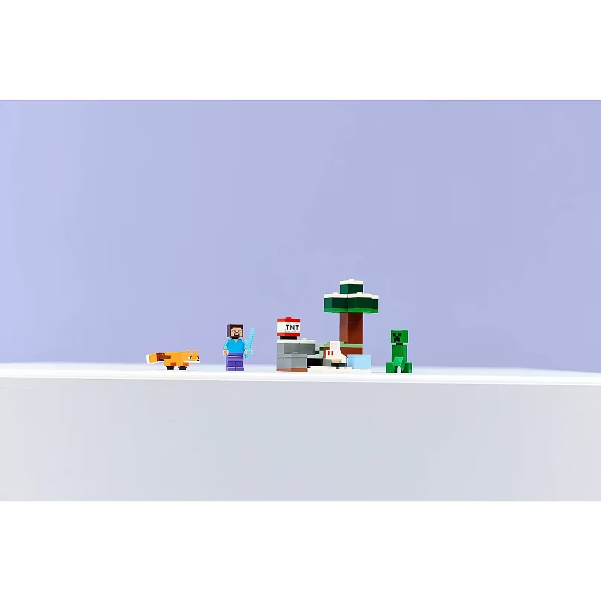 Description - Blocks Minecraft 21583 Steves Taiga Adventure Take Minecraft players to the next level with Steve's Taiga Adventure (21583), a collectible building set for boys and girls aged six and up. This compact LEGO set offers kids tons of treasure hunting and explosion fun. A Steve minifigure, plus a Creeper, fox, and baby bunny LEGO figures, join them on their adventure.