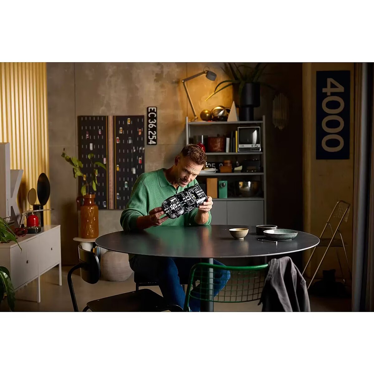Description - Pędź po zwycięstwo i uczcij ikonę motoryzacji dzięki modelowi dla dorosłych LEGO Technic Samochód wyścigowy 1966 Ford GT40 MKII (42223). Dzięki tej realistycznej wersji kultowego samochodu miłośnicy samochodów, fani wyścigów i entuzjaści budowania w wieku od 18 lat mogą poczuć ducha legendarnego wyścigu długodystansowego. Ciesz się odkrywaniem szczegółowych funkcji zestawu. Aby kierować samochodem, wystarczy obrócić górne pokrętło. Sprawdź otwierające się drzwi i podziwiaj czarno-srebrną kolorystykę inspirowaną prawdziwym zwycięskim samochodem. Otwórz pokrywę silnika, aby odsłonić silnik V8, a następnie użyj dźwigni wewnątrz, aby otworzyć maskę. Po zbudowaniu modelu możesz z dumą wyeksponować swój samochód wyścigowy w dowolnym pomieszczeniu lub biurze. Spełnij swoje marzenie o budowaniu superszybkich pojazdów dzięki gamie kolekcjonerskich samochodów LEGO Technic dla dorosłych. Poznaj inny wymiar budowania dzięki aplikacji LEGO Builder, w której można powiększać i obracać model, przeglądać instrukcje w 3D, a także zapisywać i śledzić swoje postępy. Zestaw składa się z 793 elementów.