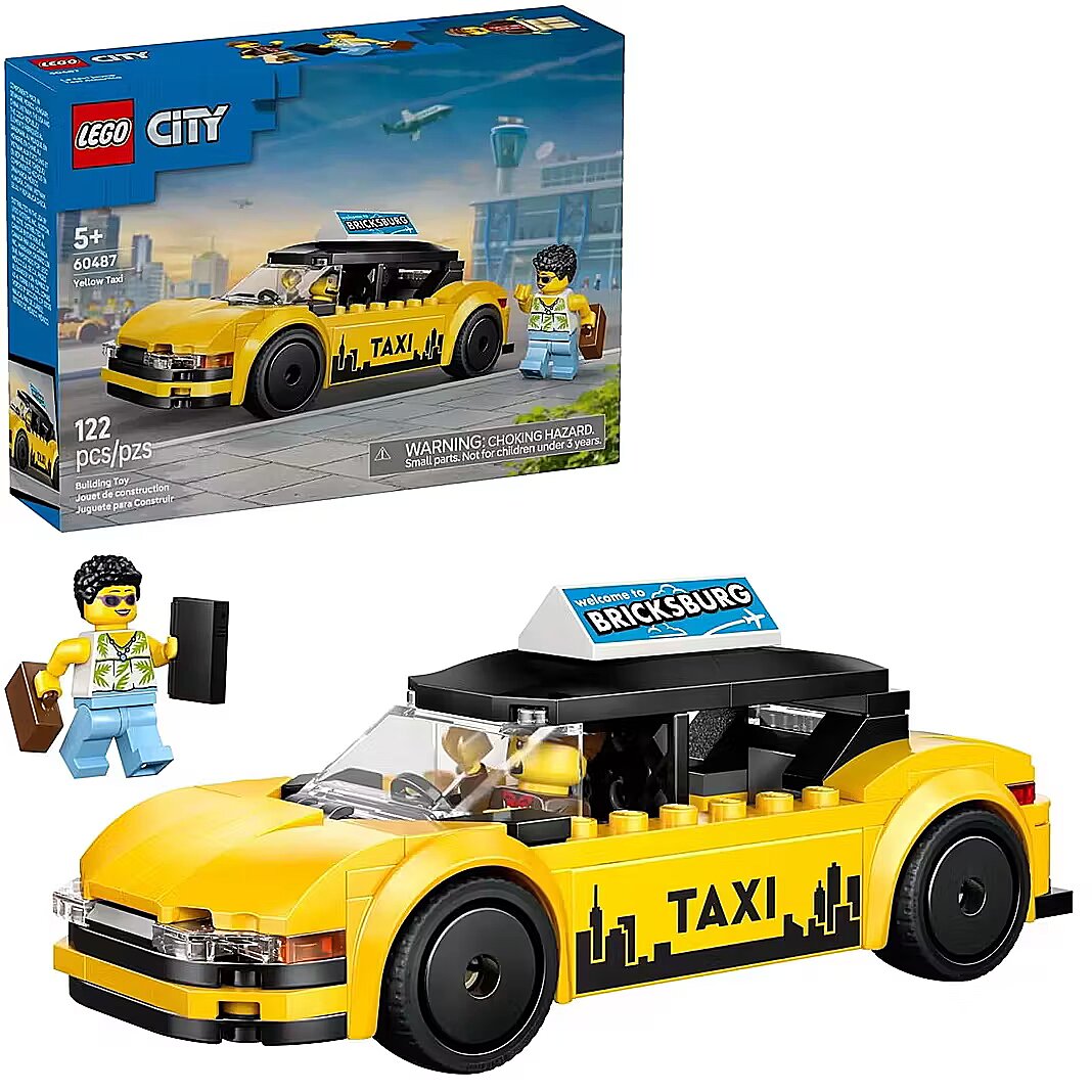 Description - Blocks City 60487 Yellow Taxi Kids aged five and up who love toy cars and model building sets will have double the fun with the LEGO City Yellow Taxi (60487) set. This cool building set features a yellow taxi with a modern electric design, an opening trunk with luggage compartments, and a hood with a faux electric motor underneath. The car features printed stickers, including a GPS screen, taxi logo, roof advertising, and a battery. Kids can also remove the roof to place the driver and tourist minifigures inside the cab for creative play and storytelling.