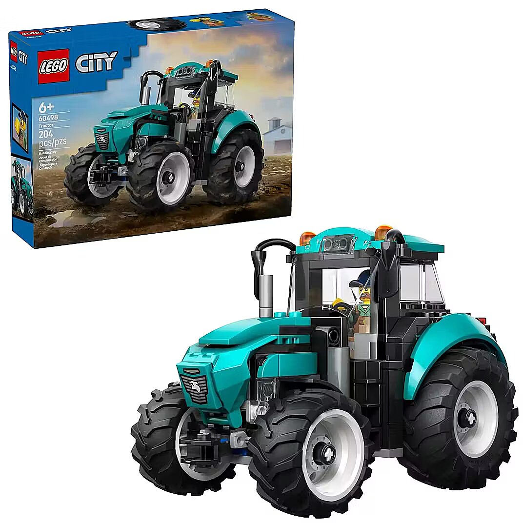 Description - Blocks City 60498 Tractor Spark the imagination of kids aged six and up with the LEGO City Tractor (60498) building set. This detailed farm vehicle features a cool turquoise color scheme and four large rubber tires. Young builders can create rooftop cabs to seat the farmer minifigure and the hood to check the engine before setting off on exciting farm adventures.