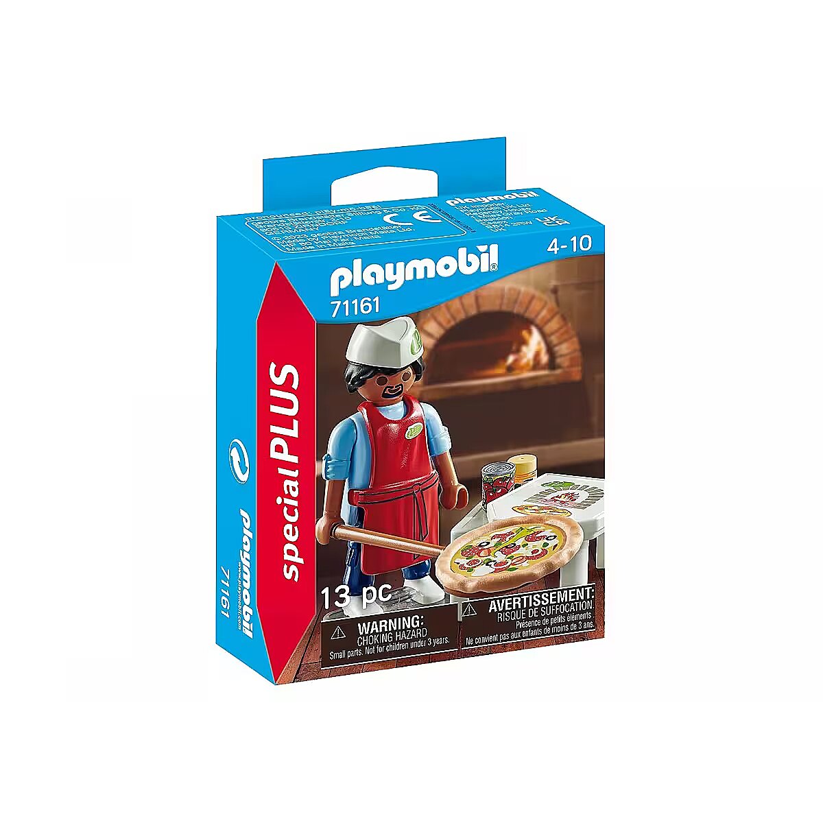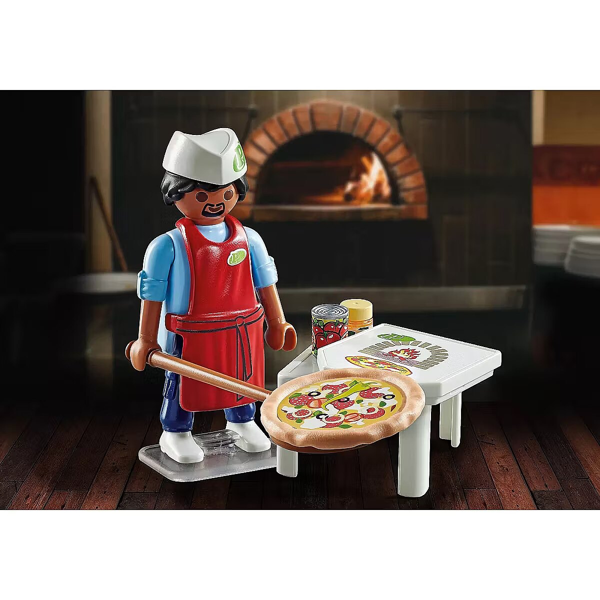 Description - PLAYMOBIL Special Plus Pizza Chef with pizza shovel and other accessories. Little pizza fans can have great fun with the Special Plus Set Pizza Maker. With the long wooden board, the pizza is taken out of the hot oven and carefully placed in the pizza box. Then it's off on its journey to the next hungry customer. The Special Plus Set includes a PLAYMOBIL figure with a chef's hat, a table, canned tomatoes, a pizza box and other extras. The apron and headgear can be removed. For a more stability of the figure, a stand plate is included in the article. PLAYMOBIL Special Plus figures offer great play fun with lots of accessories for children aged 4 and up. The loving toy figures can be played with on their own or combined with other PLAYMOBIL ranges.
