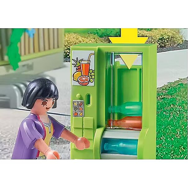 Description - PLAYMOBIL Lunch Kiosk with a PLAYMOBIL figure, counter, fruit, snacks and fillable bottle machine. As soon as the school bell sounds, everyone rushes to the Lunch Kiosk. What delicious food from the school garden will be available today? Get your drinks at the fillable bottle vending machine. With the PLAYMOBIL set School Kiosk, children aged 4 years and up can recreate exciting adventures and everyday situations. The toy set includes a PLAYMOBIL figure, a sales counter, various types of fruit and snacks, and a functioning bottle machine that can be filled with bottles. A great birthday gift or any-day treat for creative children. The Lunch Kiosk can be played with on its own or combined with the other school sets in the PLAYMOBIL City Life series (sold separately).