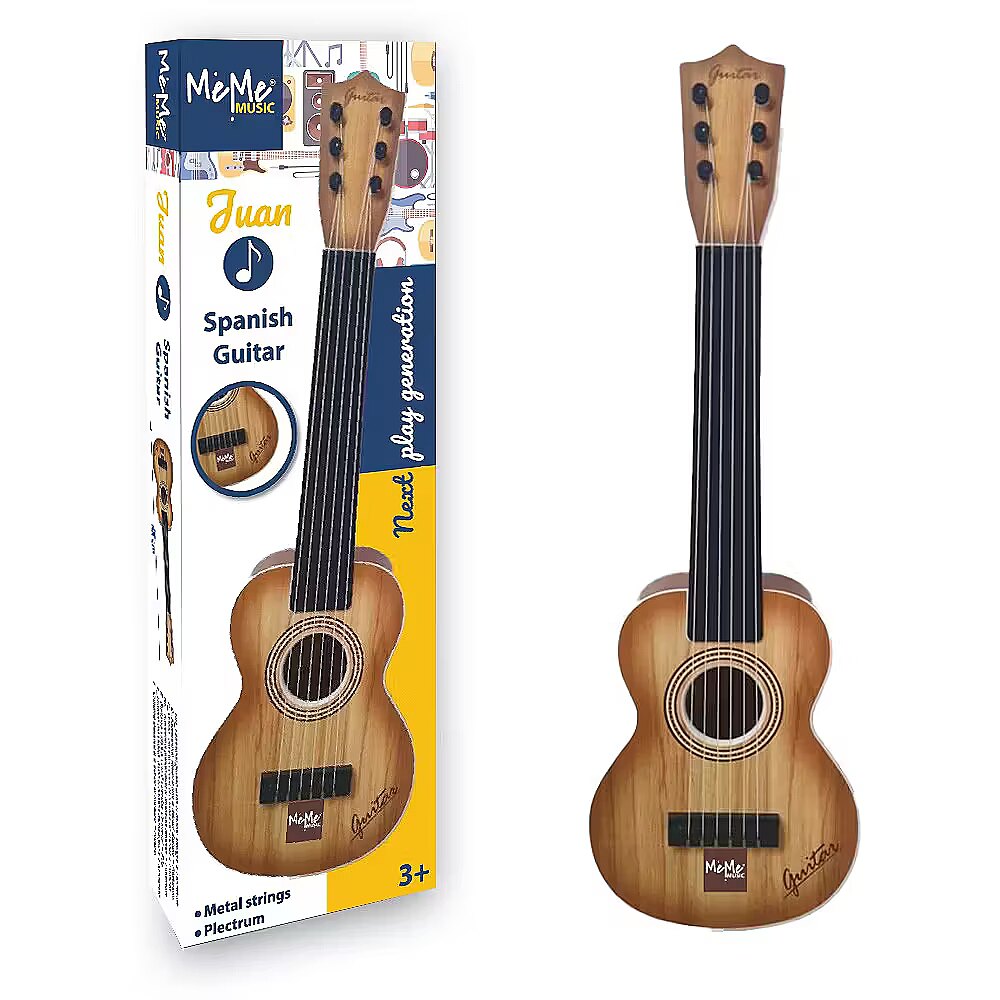 Description - Gitara hiszpańska plastikowa Meme Plastikowa gitara hiszpańska zawierająca 6 metalowych strun.