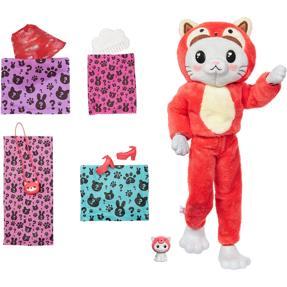 Description - Barbie Cutie Reveal costume-themed series Chelsea dolls offer the cutest unboxing experience with six surprises! Discover a Kitten in a Red Panda costume, a Dog as a Frog, a Teddy Bear as a Dolphin or a Bunny as a Koala. Remove the plush costume to reveal a Chelsea doll. Which doll will you reveal? Get cozier with more surprises like a skirt and mini pet that matches the doll's costume. Flip the plush top for an over-sized jacket and the costume head for a pet bed. Icy cold water adds even more cuteness with color-change transformation on the mini pet; warm water changes it back for repeat fun! Kids will love discovering all the surprises in this cozy cute Barbie Cutie Reveal series. Each doll sold separately, subject to availability. Dolls cannot stand alone. Colors and decorations may vary.