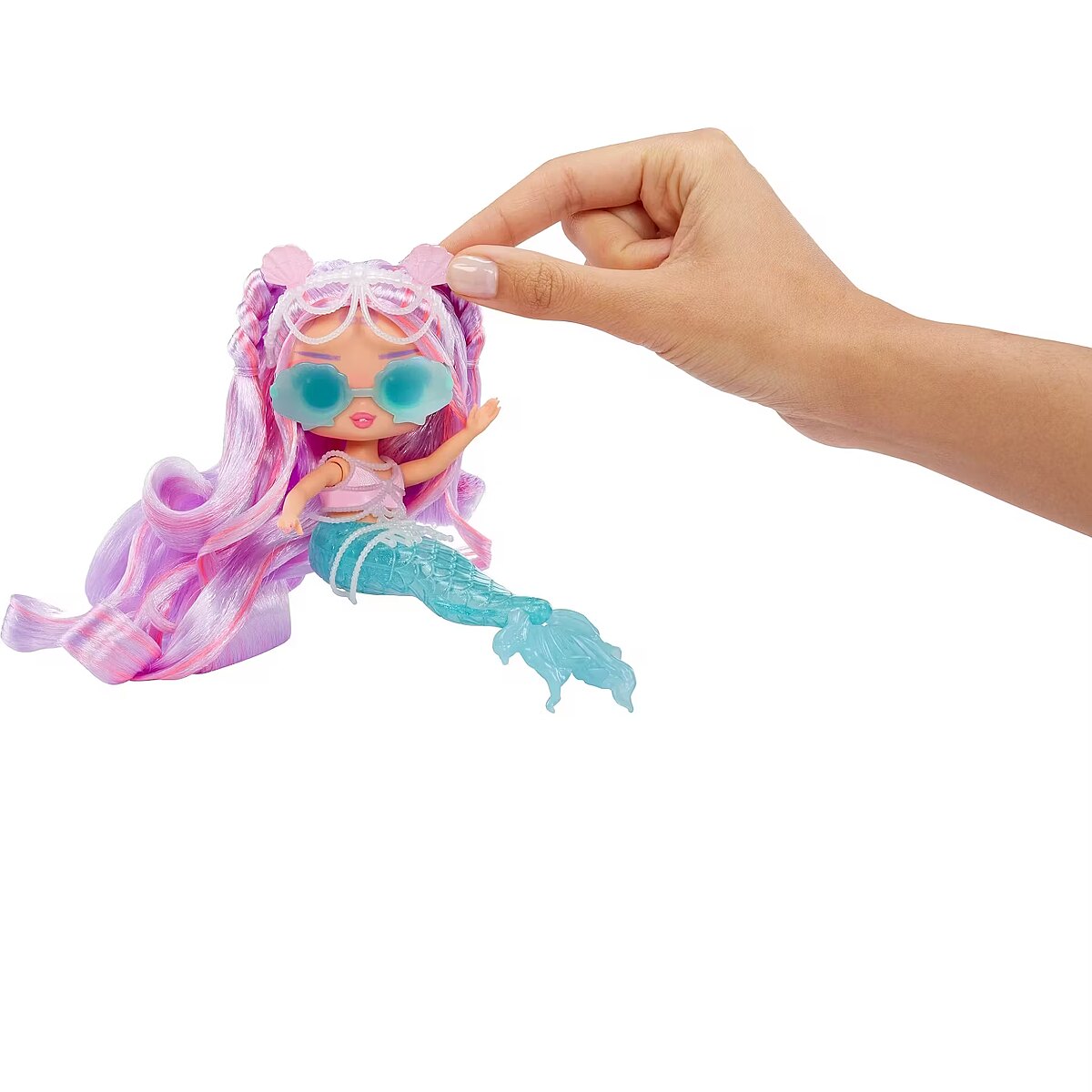 LongDesc - I'm in Be Tween, with underwater style and colorful surprises like you've never seen! Look out world, cuz we mermaids are going to make a splash!Get ready to dive into an enchanting world of magical mermaid fun with the all-new L.O.L. Surprise Tweens Mermaid Lana Marine™ fashion doll with dazzling accessories to unbox! Perfect for bath time and imaginative play, Lana Marine™ brings a splash of excitement with her beautiful color-changing tail and mesmerizing fin that can move back and forth! Dip your Tweens Mermaid doll into cold water and watch as her tail transforms colors from aqua blue to pearl purple, creating a magical underwater experience! Can you guess what her aqua blue fin changes colors to? Don’t forget to style your doll with her charming accessories including her sea shades, sea shell and pearl tiara, and cute pearl encrusted top! She has stunning features, gorgeous hair, her own fashionable mermaid look, and comes articulated for tons of posing opportunities, including sitting as she bends at her waist! She can even stand on her fin, making styling your doll even easier with greater stability! Discover what’s inside each box including a fabulous L.O.L. Surprise Tweens Mermaid doll, glasses, a headband, and a pearl encrusted accessory to complement the doll’s top and tail! Collect all 4 glamorous L.O.L. Surprise Tweens Mermaid fashion dolls: Cleo Cove™, Lola Waves™, Lana Marine™, and Serena Finn™ for a complete set of endless mermaid fun! L.O.L. Surprise fashion dolls with stylish hair, outfits and many detailed accessory pieces make a perfect toy for kids, including 4 years old and up for imaginative pretend play! As gifts for any special occasion, dolls provide hours of social play with siblings and friends! From MGA Entertainment, creators of L.O.L. Surprise fashion and collectible dolls, Rainbow High™ fashion dolls, Na Na Na Surprise dolls, Bratz® fashion dolls, MGA's Dream Ella™, MGA's Glitter Babyz™, Lalaloopsy™, Baby Born® Surprise baby dolls and collectibles, Little Tikes® kids' toys and many other favorite brands.