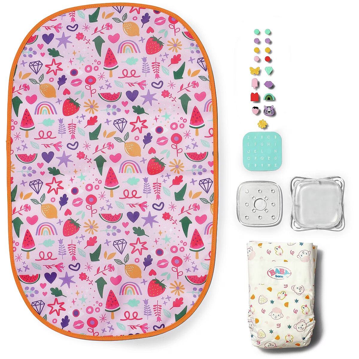 LongDesc - The BABY born diaper bag for dolls is the perfect accessory for little doll parents! It comes with everything you need for care, including diapers, powder box and a handy storage box. To make the experience even more creative, children can decorate the diaper bag with the included pins - for their very own personal style - over and over again.