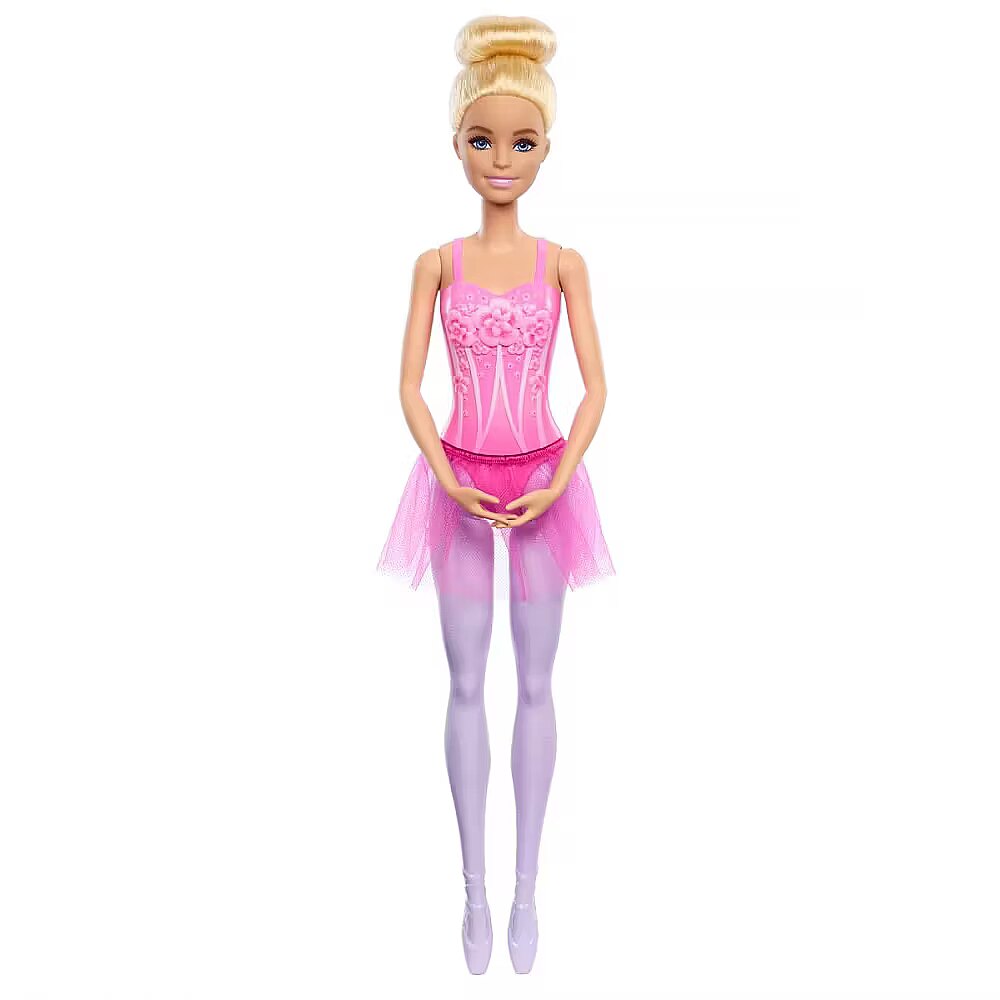 LongDesc - Imaginations take center stage with Barbie ballerina dolls! Wearing a classic look, each beautiful doll features a decorated bodice with 'en pointe' toe shoes and sheer removable tutu. A chic top-knot bun completes the inspiring look. With ballet-posed arms, these dancers are ready for the spotlight! Kids ages 3 years and older can collect them all for a dance troupe. Each sold separately, subject to availability. Dolls cannot stand alone. Colours and decorations may vary.