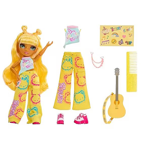 LongProductName - Rainbow High Jr High Rock Band - Sunny, Yellow 9” Fashion Doll with Guitar, Customize with Stickers, Posable, Great Toy Gift for Kids Ages 4+