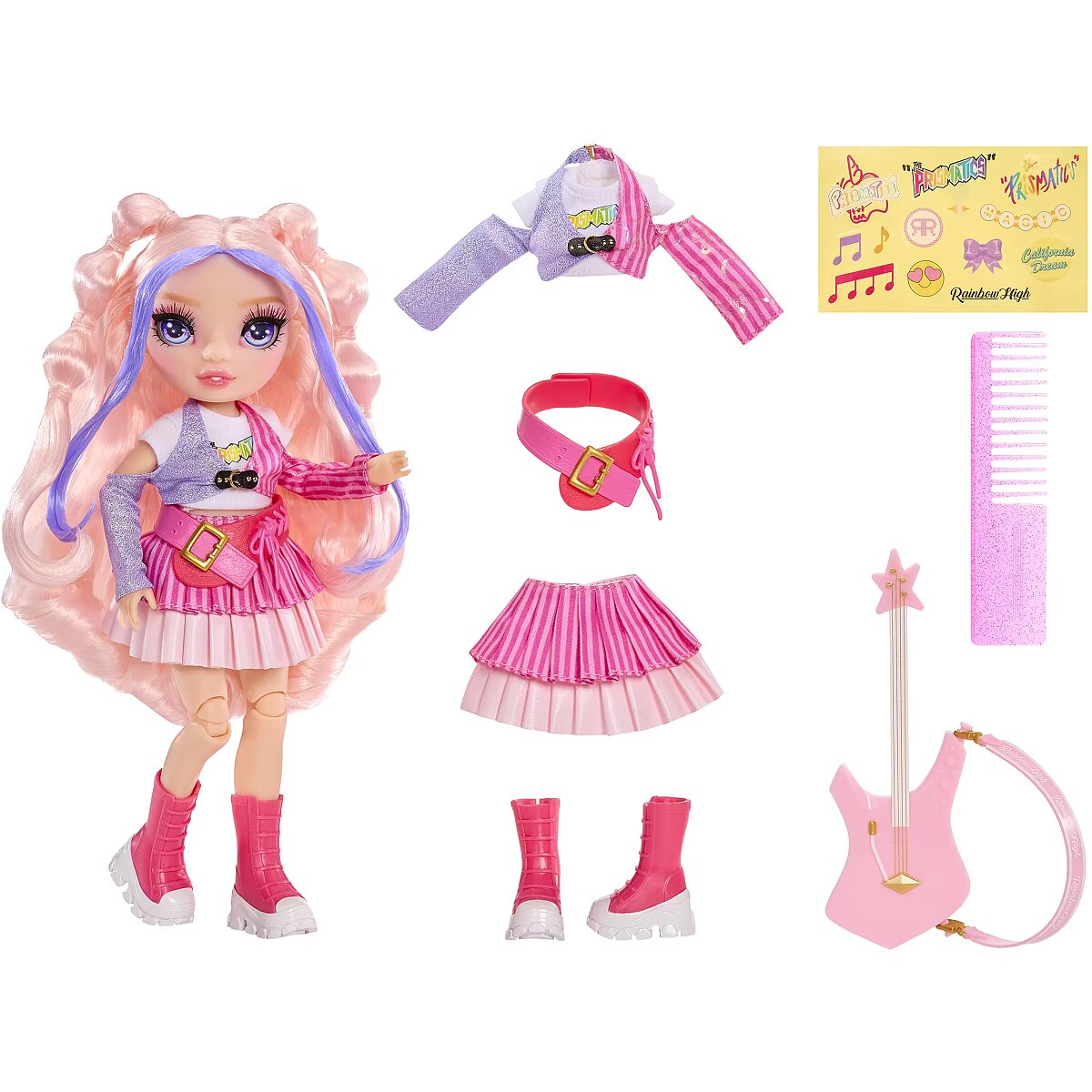 Pikk tootenimi - Rainbow High Jr High Rock Band – Bella, roosa 9-tolline moenukk kitarriga, kleebistega isikupärastatav, liigutatav, suurepärane mänguasi kingituseks lastele alates 4. eluaastast