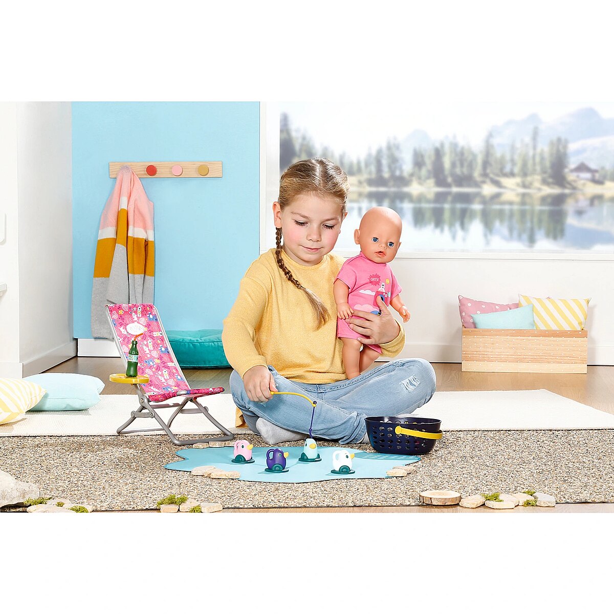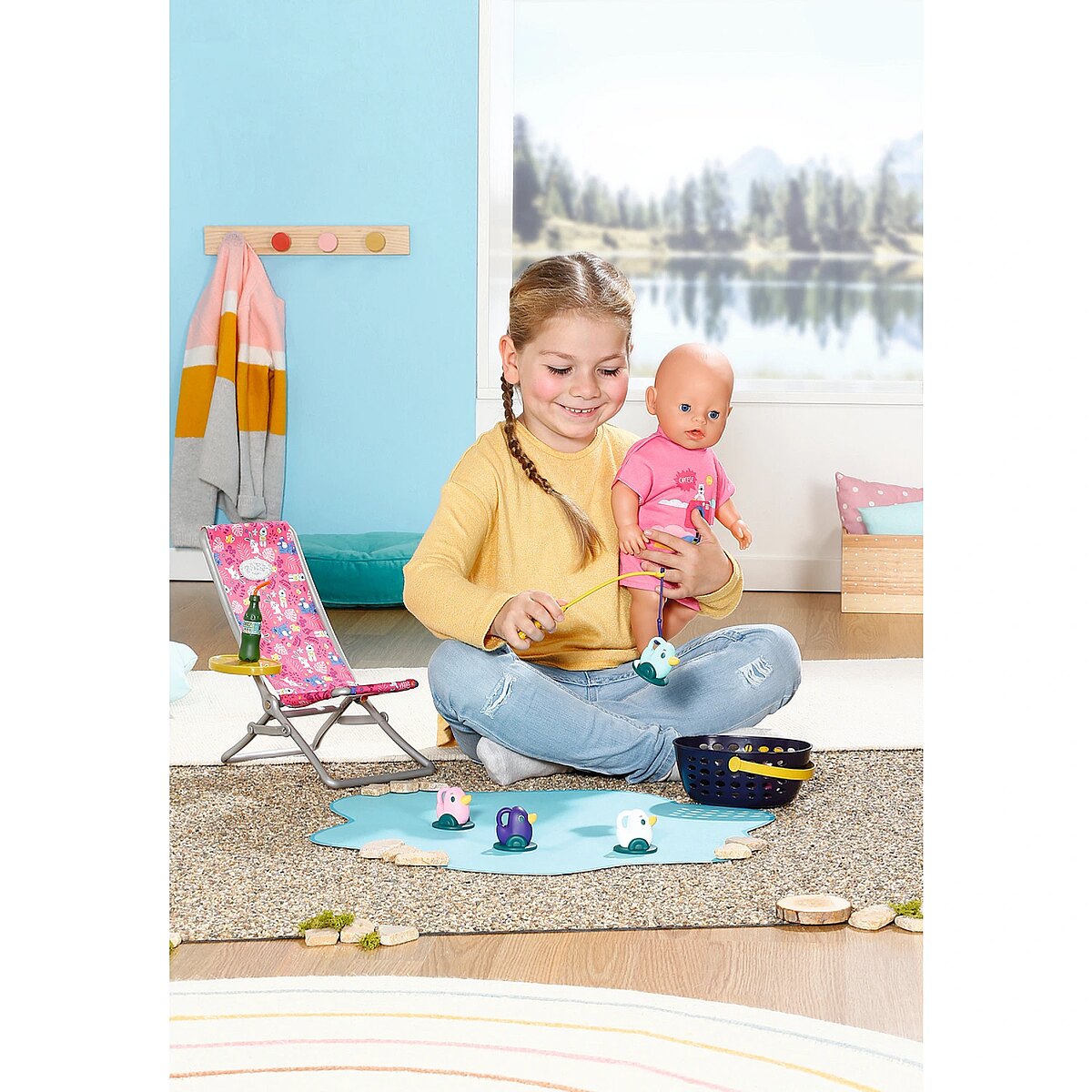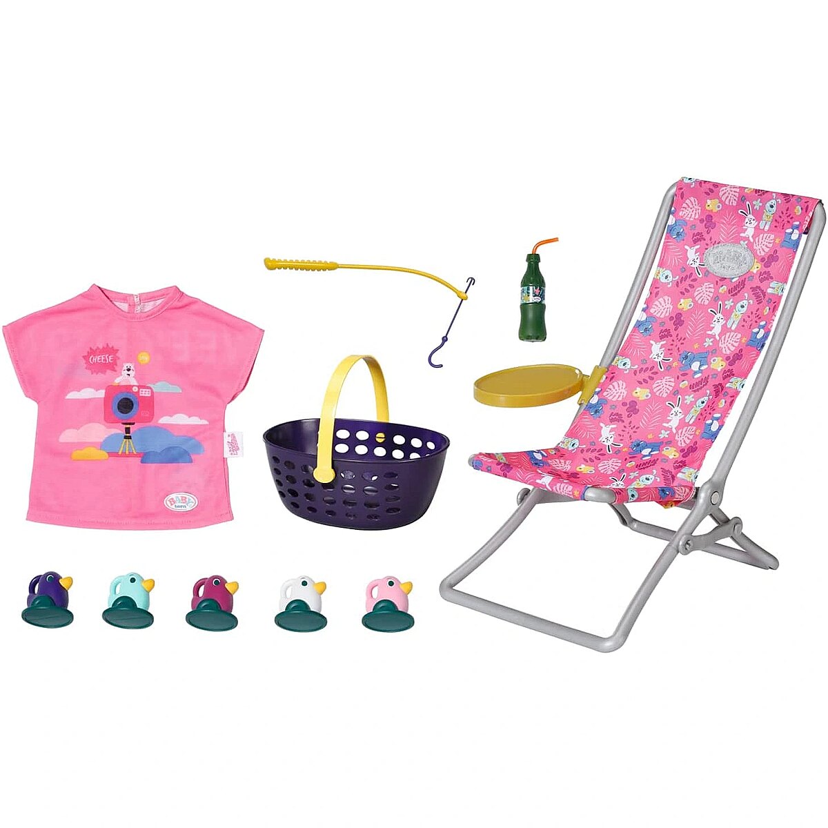 Zapf Creation BABY born Weekend Fishing, doll accessories (dress, deck chair with table, soda bottle, basket, 5 ducks and rod)