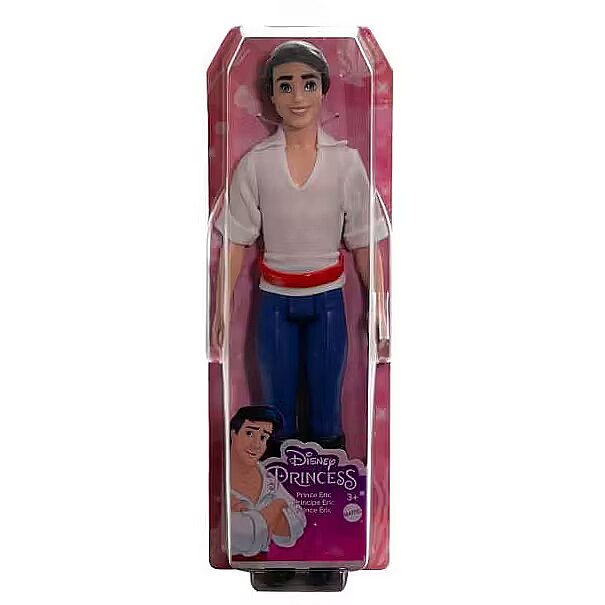 LongSummaryDescription - Disney Princess Prince Eric Fashion Doll in Look Inspired by Disney Movie The Little Mermaid. Doll type: Big doll, Doll's gender: Male, Recommended age (min): 3 yr(s), Suggested gender: Girl. Height: 330 mm, Weight: 150 g. Material: Fabric, Plastic, Product colour: Multicolour