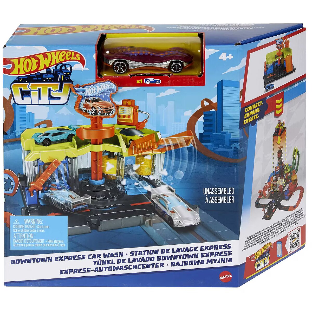 LongSummaryDescription - Hot Wheels City Downtown Express Car Wash Playset. Recommended age (min): 4 yr(s), Recommended age (max): 99 yr(s), Material: Plastic