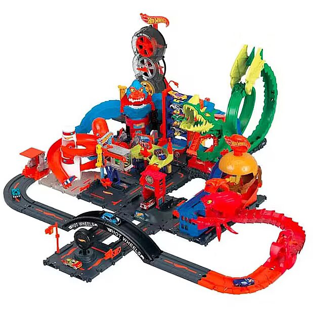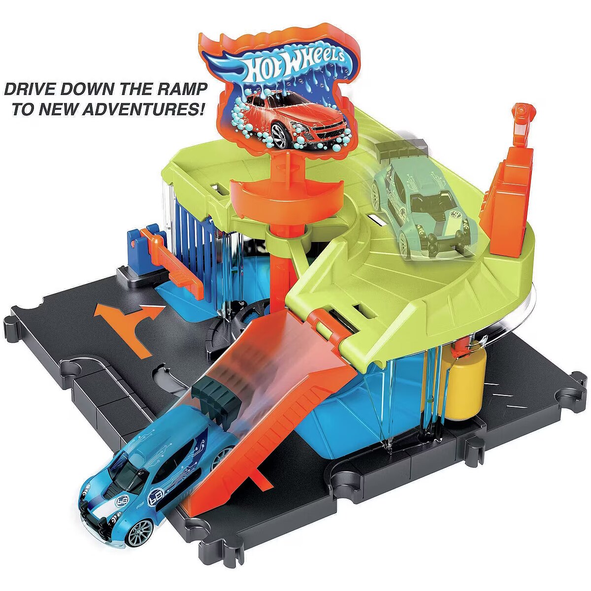 LongDesc - After battling the vicious creatures of Hot Wheels City, hit the car wash to clean off the grime and debris of city living. Turn the logo sign and the car automatically moves through the wash, always visible through the transparent windows. Drive up the ramp to refuel or park, then head off to other adventures. The set connects to other Hot Wheels sets through multiple connection points and comes with one Hot Wheels vehicle for push-around play straight out of the box. Each sold separately, subject to availability. Colours and decorations may vary.
