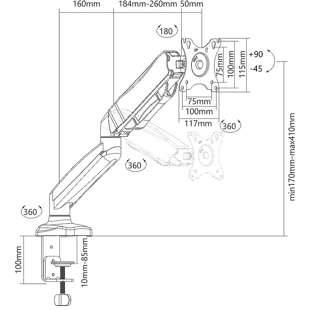 productName - Montis Uchwyt do monitora „ELBRUS” MT014 81.3 cm (32") Black Desk