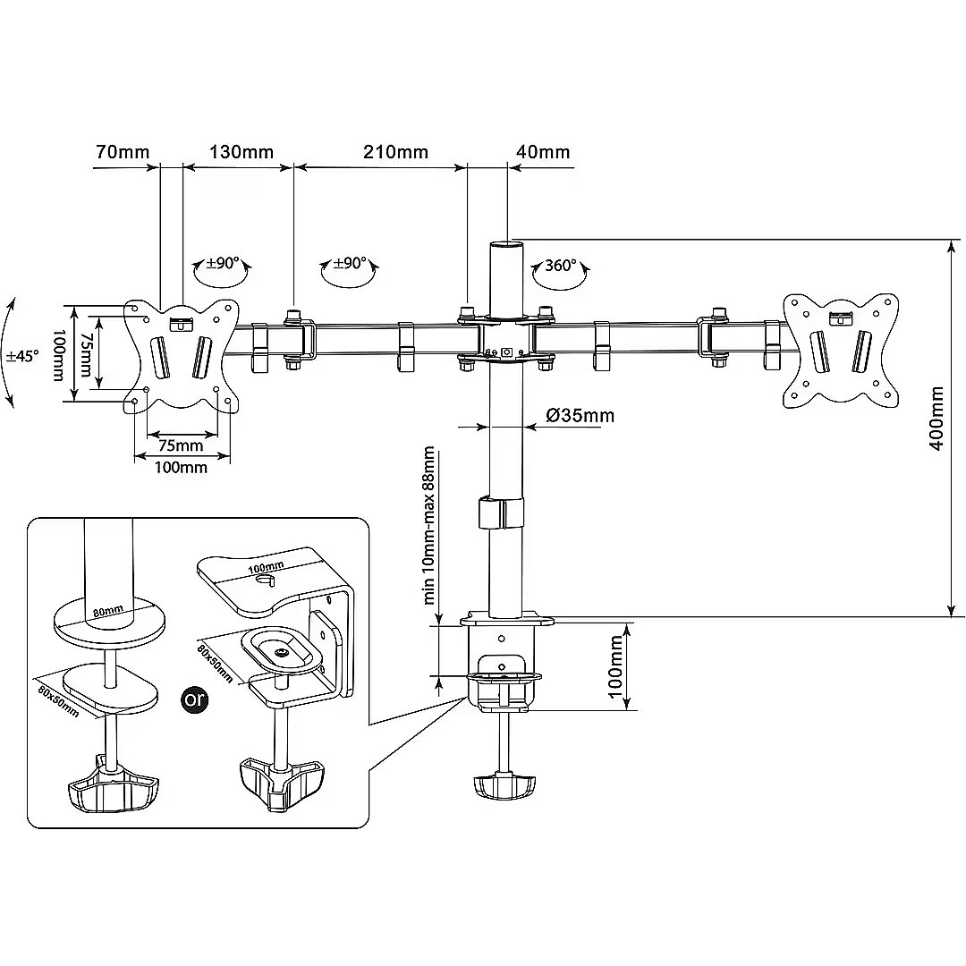 productName - Montis Uchwyt monitorowy podwójny Everest 13-27" MT015 68.6 cm (27") Black Desk