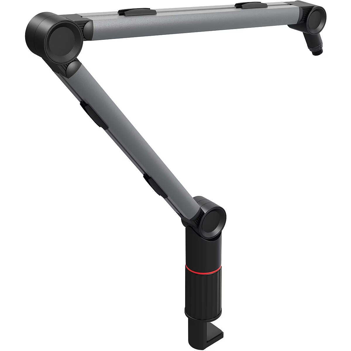 LongDesc - Discover the Thulium 700 - a professional microphone arm designed for the most demanding users. Compatible with 99% of microphones on the market, the Thulium 700 arm is the answer to the growing needs of gamers, streamers and content creators. Discover the Thulium 700 - a professional microphone arm designed for the most demanding users. Compatible with 99% of microphones on the market, the Thulium 700 arm is the answer to the growing needs of gamers, streamers and content creators. It offers exceptional robustness and stability, and its unique design allows it to work with microphones weighing up to 1 kg. Thanks to its adjustable tension force and greater folding angle than competing models, the Thulium 700 allows convenient mounting in a wide range of comfortable positions on the desk.ROBUST DESIGN FOR STABLE SUPPORTThe Thulium 700 features an extremely robust design, providing high stability even for large and heavy microphones and other audiovisual equipment, such as cameras and additional lighting. The sturdy design keeps the arm stable in its set position, which is crucial for professional recording without vibration or wobble. The relatively high minimum tension force reduces the risk of damaging equipment even with extreme tilting. RELIABLE MOUNTING ON VARIOUS SURFACESThe Thulium 700's advanced mounting system allows the arm to be attached very securely to a desk top 18-60 mm thick using the original clamp. Alternatively, for countertops 10-60 mm thick or with a beveled edge, a 10 mm diameter screw mount can be used, with the option to drill through the countertop. Both solutions provide unparalleled flexibility and installation security in any working environment.TENSION ADJUSTABLE TO MICROPHONE WEIGHTThe Thulium 700 arm is equipped with a tension adjustment system that allows you to easily adjust its position according to the weight of your microphone or other compatible device. To adjust the tension, simply tighten or loosen the screw hidden inside the base of the arm and adjust the 3 lock knobs of the desired position. Proper tension adjustment will ensure that subsequent position changes will not require tightening the knobs for the same device.DIFFERENT BENDING ANGLE FOR ELASTIC SETTINGThanks to its special design, the Thulium 700 arm allows a great deal of flexibility in terms of bending angles, and therefore easier adjustment of microphone positions, compared to other arms on the market. The lower part of the arm can be bent back by a maximum of 152°, while maintaining an angle of 55.5° between it and the upper part. This feature is extremely useful for gamers, streamers and content creators, allowing the accessory to be positioned close to the face while keeping the arm at the desired location in the recording frame. The maximum bending angles are illustrated in the graphic - it is worth noting that they may vary slightly depending on the set tension.ADAPTERS FOR VARIOUS MICROPHONESAND OTHER EQUIPMENTThe Thulium 700 kit includes a discrete blackened 3/8" to 5/8" adapter, allowing us to mount almost any microphone available on the market, including our flagship Radium 600 G2. In addition, the arm is equipped with a 1/4" photo thread adapter, so we are able to hook up a wide range of other audio-visual devices, such as cameras and camcorders, additional lighting, smartphone holders and more. Thanks to the matte black coloring, the adapters fit perfectly into the design of the arm and do not give unwanted reflections in recordings with strong light.ORGANIZATION OF CABLESTHANKS TO SPECIAL CLIPSThe Thulium 700 arm comes with up to two sets of interchangeable clamps for USB and XLR cables of 6 mm and 8 mm thickness, respectively. Each set includes 4 clamps, 2 for each of the long parts of the arm. With these, you can avoid cable slack (especially thinner USB cables) and maintain perfect order and aesthetics in your workspace, which is especially important in professional recording environments.ELEGANT AND ATTRACTIVE FINISHThe Thulium 700 arm is finished in gaming colors of black, red and gun metal, which translates into a universally appealing look on streams and videos. With a sleek finish and consistent design to match our Toron 531 headphones, the Thulium 700 creates a stylish and professional gaming headset whose upscale look fully reflects its build quality.